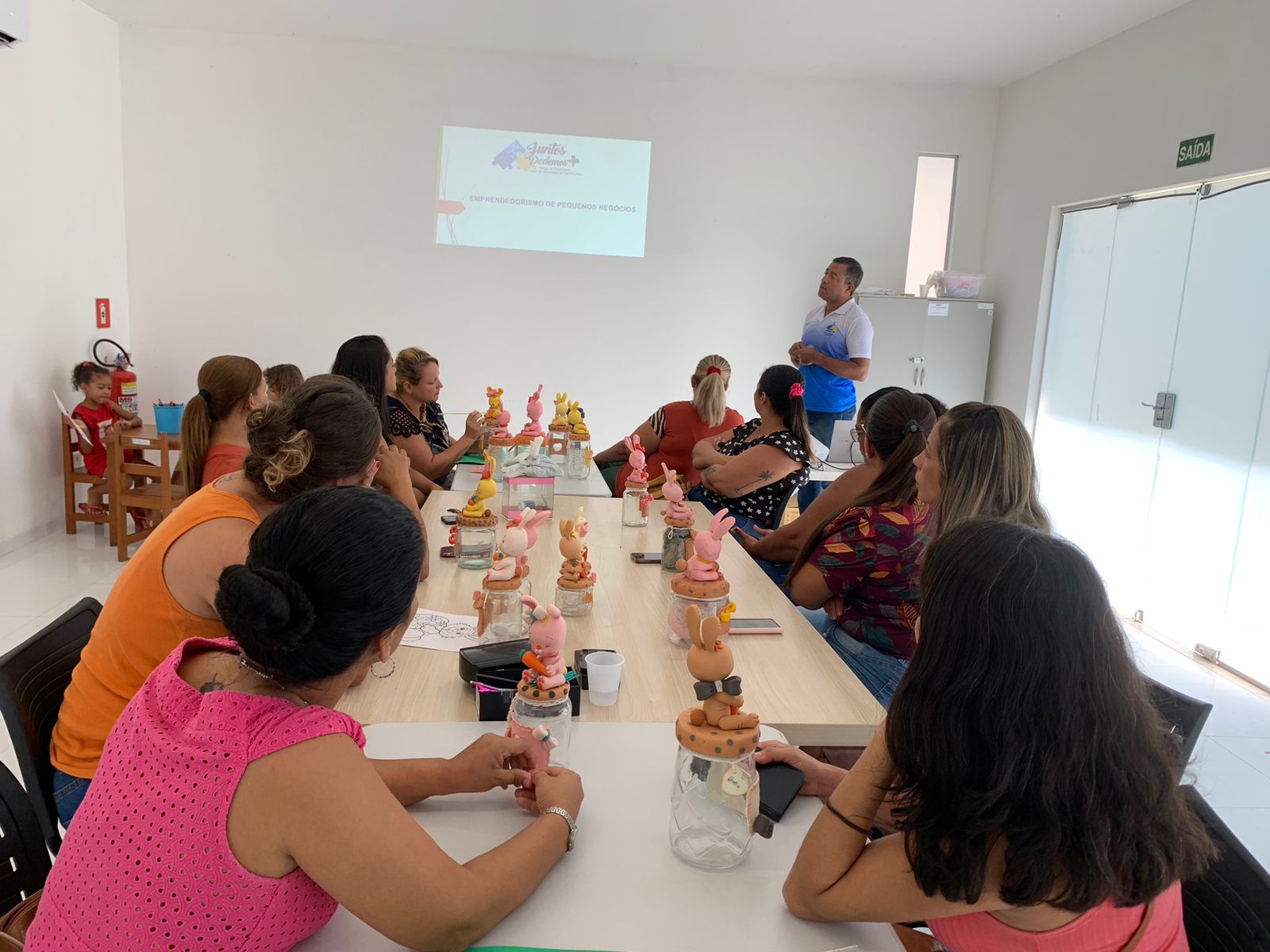 A oficina contou com a participação da diretora da VCB Seccional Ladário, CF (T) Rosana Azevedo, e foi conduzida pela voluntária VCB Rafaelle Rezende, que ensinou técnicas de biscuit, tendo como referência a modelagem de coelhinhos para aplicação em potes.