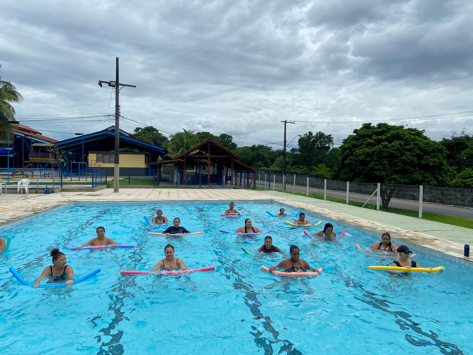 Nada como fazer exercício físico na piscina para amenizar o calor da Amazônia! No Abrigo do Marinheiro em Manaus, as aulas de hidroginástica do projeto IntegrAção têm feito sucesso entre as mulheres da Família Naval.