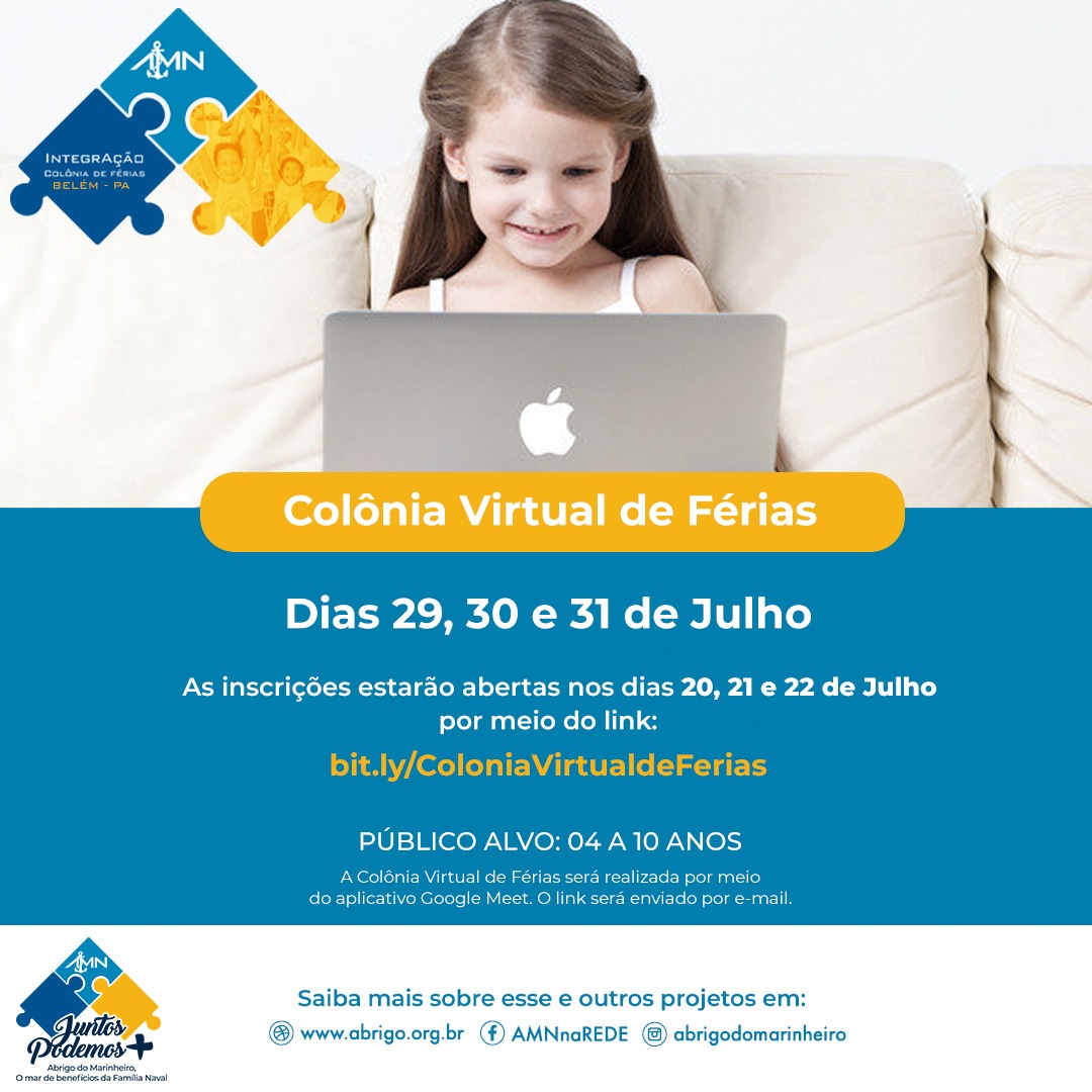 A quarentena não vai impedir a criançada da Família Naval em Belém de aproveitar uma divertida e tecnológica Colônia de Férias do AMN.