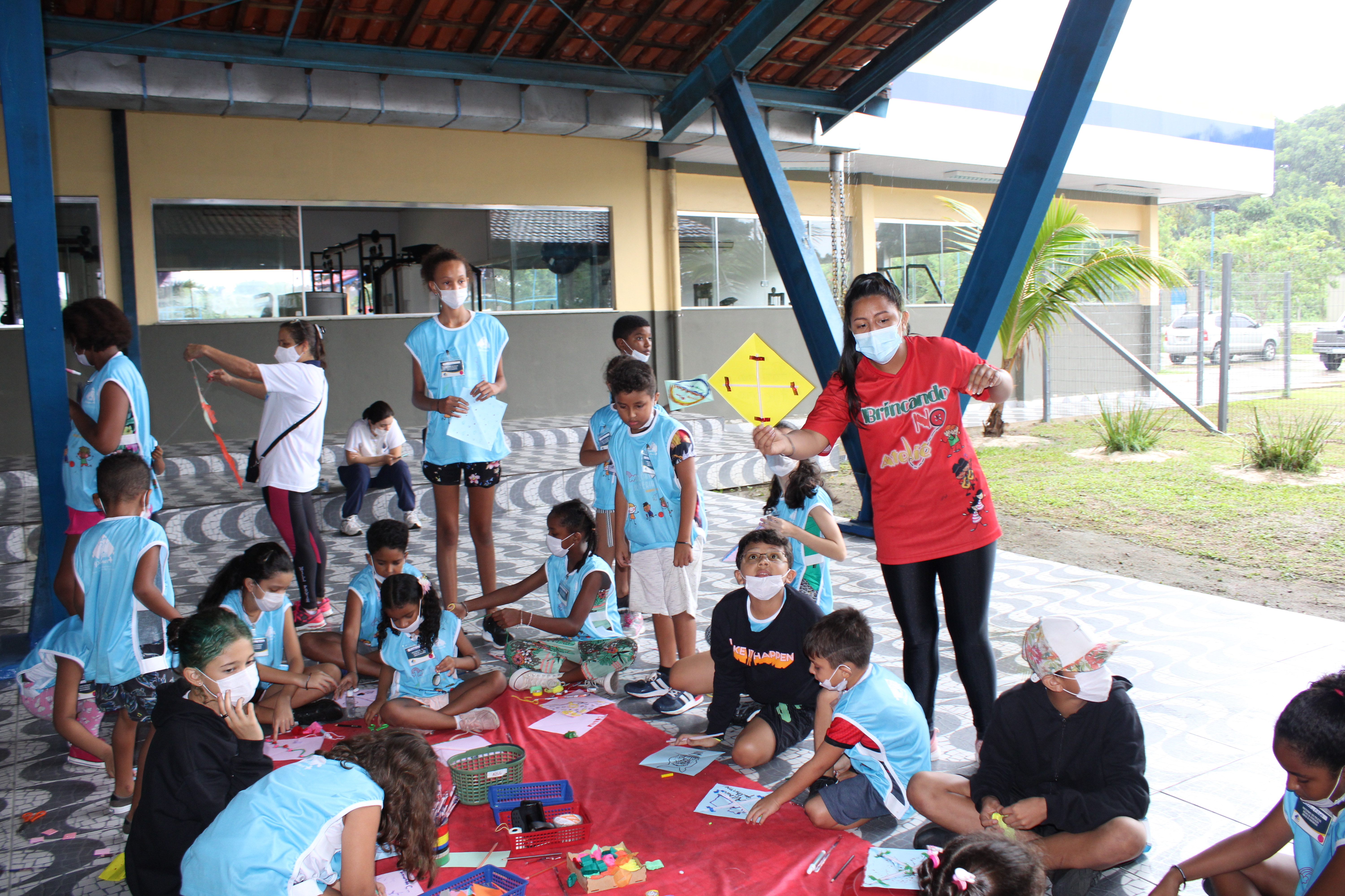 Realizamos as oficinas Artísticas: Flâmula, Máscaras, Origami (avião de papel) e Curica para customizarem e desenvolverem atividades lúdicas em suas equipes.