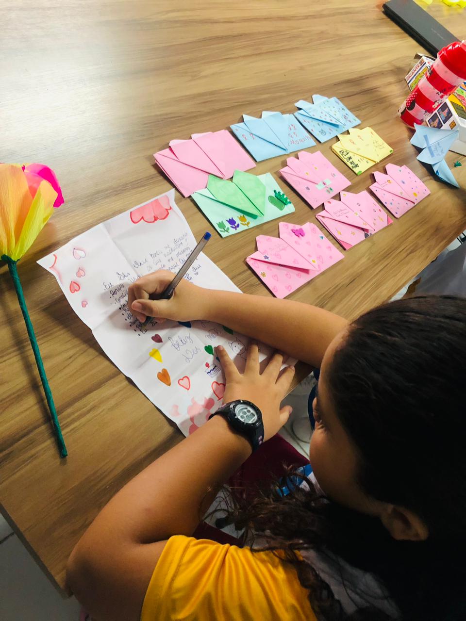 A aluna Emilly Safira, da Caverna Mestra, expressou seus sentimentos sobre essa atividade tão especial: “Eu achei muito legal, pois consegui fazer algo com muito carinho para minha mãe e ainda aprendi a fazer uma rosa, que posso tentar produzir em outras datas e, assim, demonstrar meu amor e carinho”.