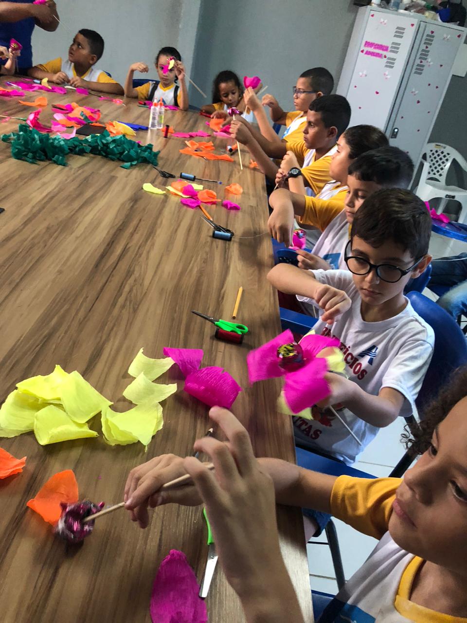 Além de presentear as mamães da Família Naval, o objetivo geral desta atividade foi tornar a aprendizagem da língua portuguesa mais prazerosa e divertida. Após as produções textuais, as crianças confeccionaram uma rosa de papel crepom, sob a orientação da voluntária Fabrícia, complementando o presente especial para as mães.