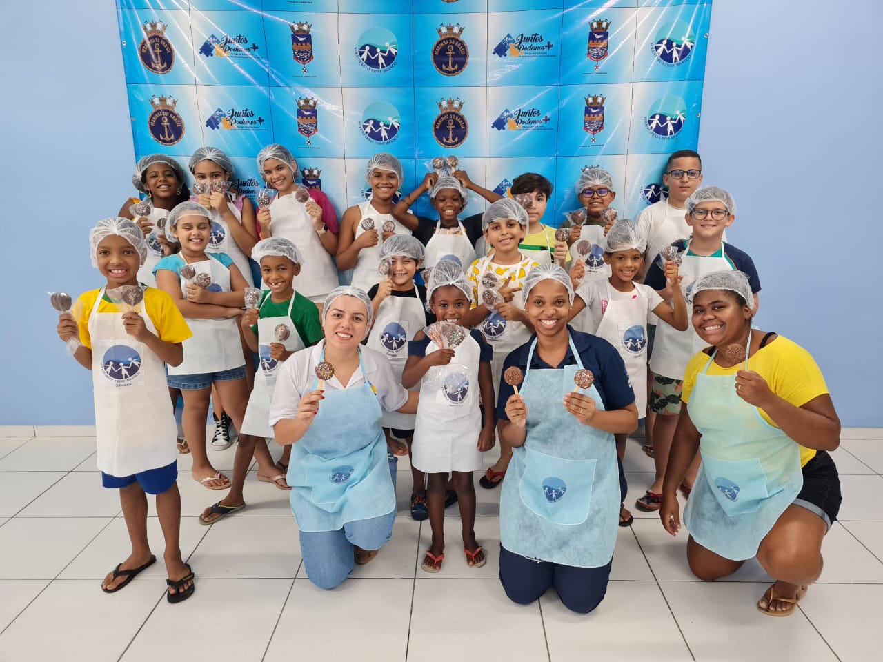 O Abrigo do Marinheiro em Salvador, em parceria com a Diretoria VCB Seccional Salvador, realizou oficina de culinária infantil.  Ao todo, dezesseis adolescentes participaram da oficina, onde confeccionaram pirulitos de biscoito com cobertura de chocolate e sequilhos de leite condensado, que logo depois foram devidamente degustados pelos minichefs.