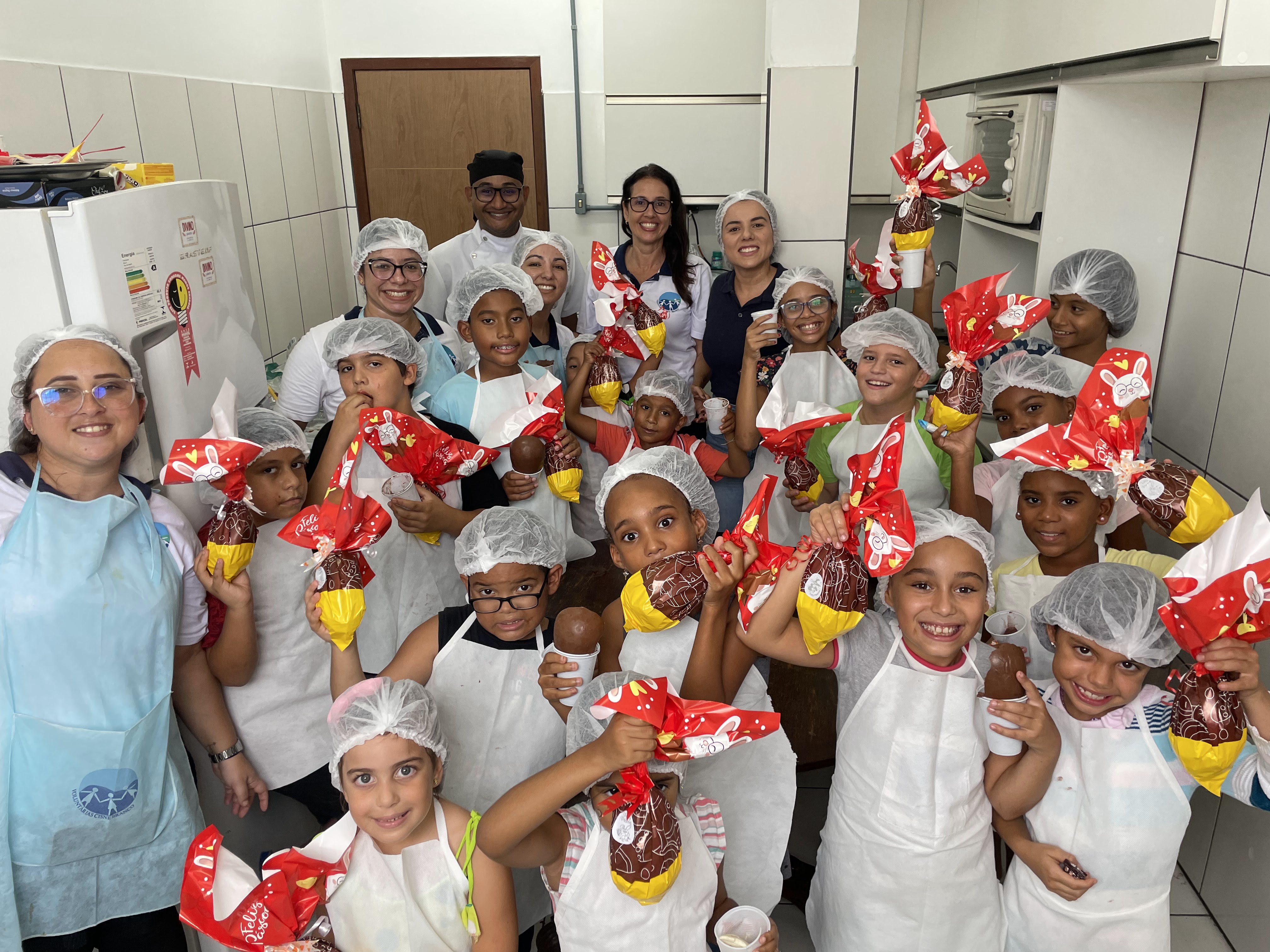 O Workshop foi conduzido pelo convidado chef Gabryel Boaventura, que desenvolveu as habilidades das crianças durante a produção, com muita diversão e soltando a imaginação. No encerramento, cada criança foi presenteada com um Ovo de Páscoa.