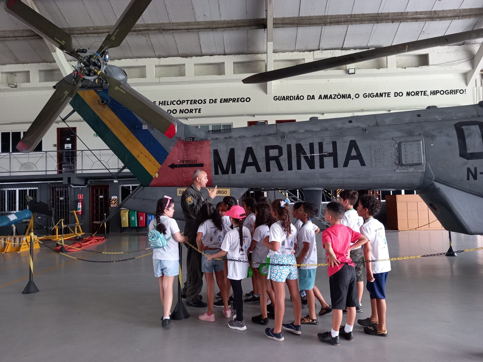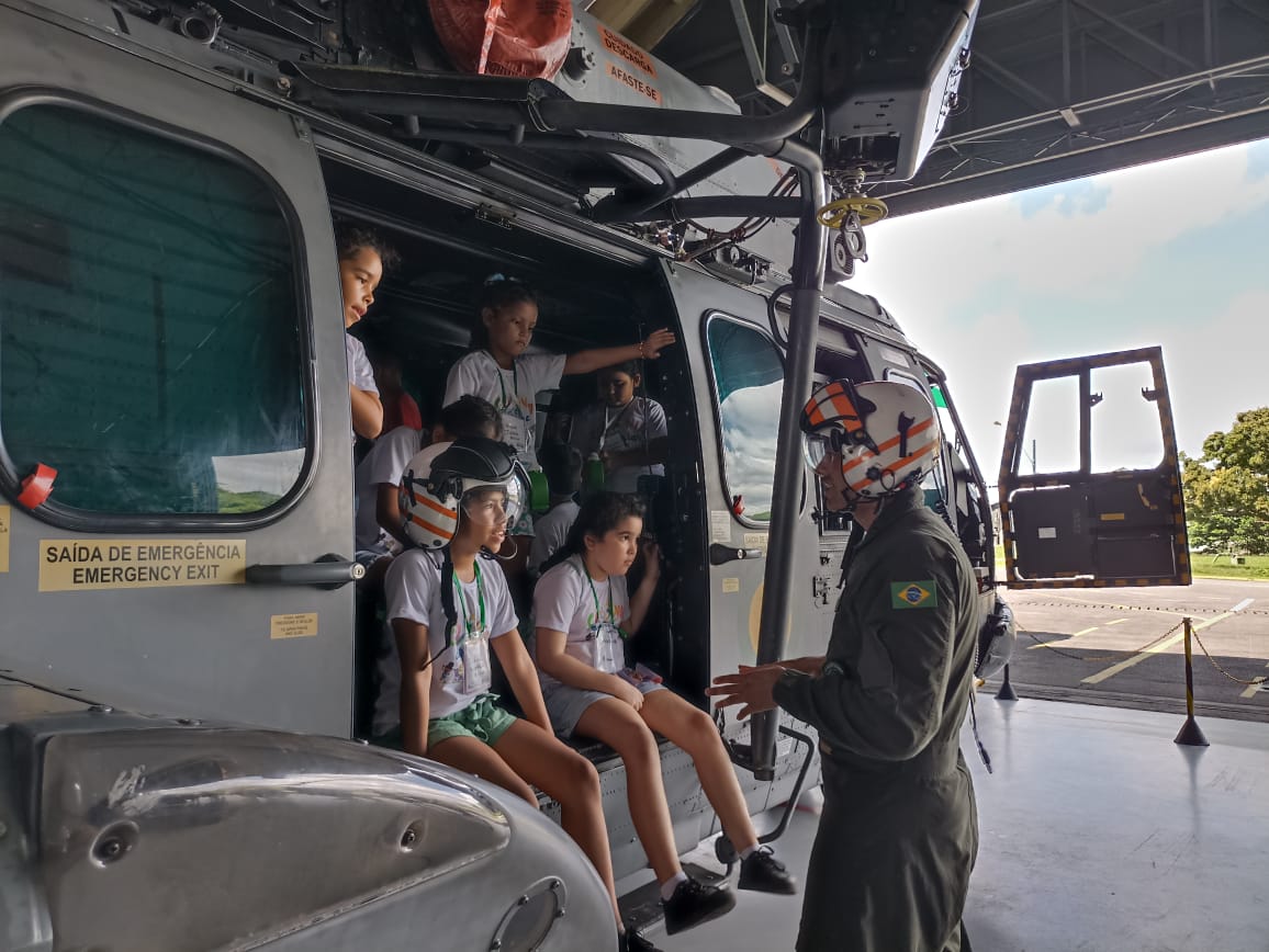 A outra visita foi ao Primeiro Esquadrão de Helicópteros de Emprego Geral do Norte, onde as crianças tiveram a oportunidade de conhecer de perto as aeronaves, a missão e a rotina dos militares que ali servem.