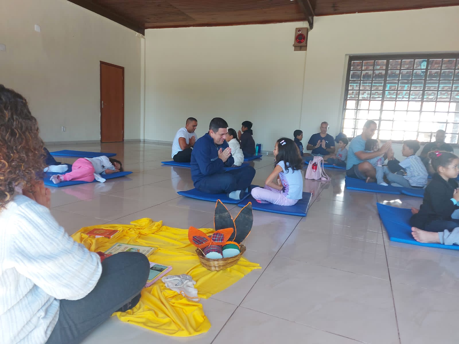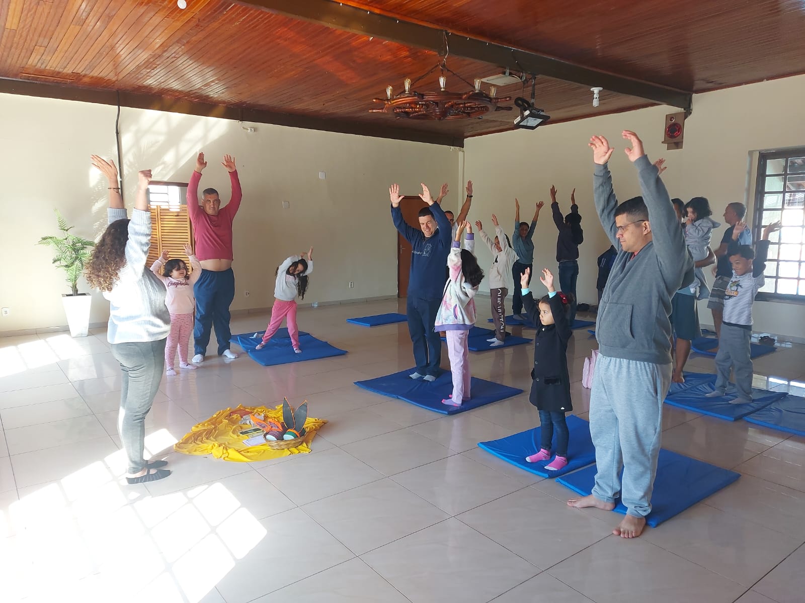 Para complementar as atividades, aconteceu uma dinâmica entre contação de histórias e Yoga, que além de ser uma experiência imersiva por meio da história escolhida, contou com a prática de uma metodologia que proporciona a harmonia entre o corpo e a mente, tão necessária para a manutenção da qualidade de vida no mundo atual, independentemente da idade.