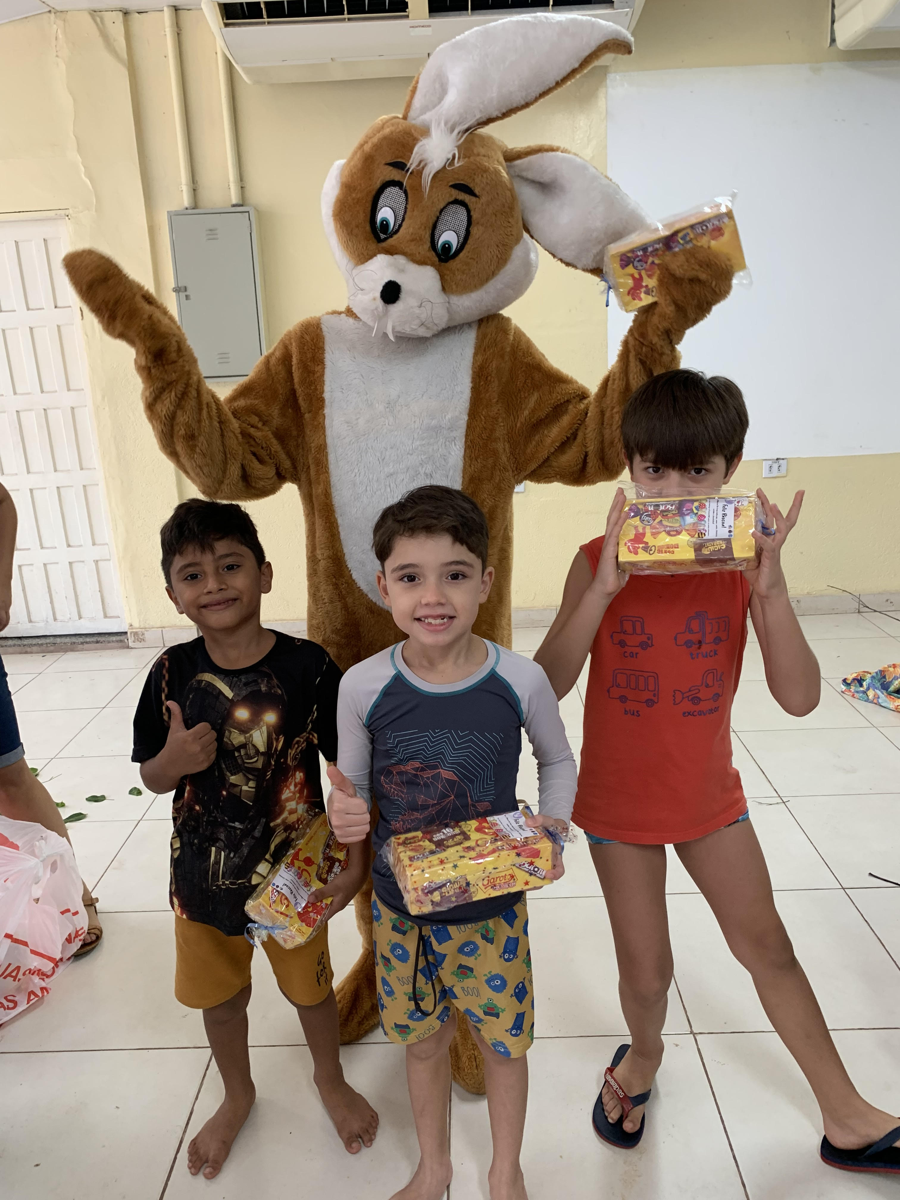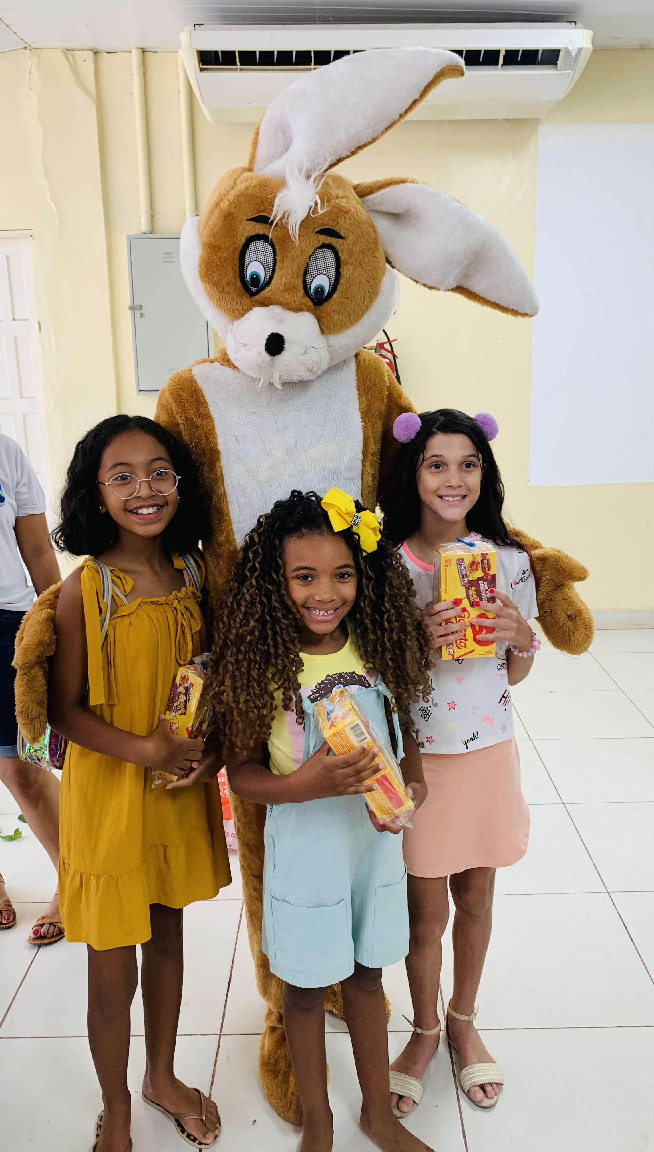 Conduzida pela pedagoga Juslei Sousa, a atividade que faz parte do Projeto IntegrAção contou com a participação ilustre do Coelho de Páscoa, que distribuiu caixas de bombons para cerca de 60 crianças participantes do evento.