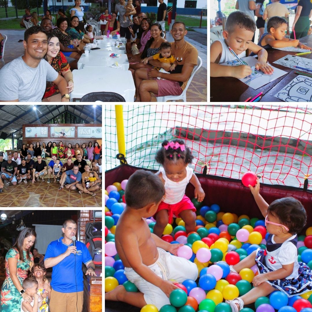 Foi uma tarde muito agradável, onde as crianças aproveitaram brincando no pula-pula, com danças, fazendo desenhos de colorir, e com um lanche especial. Enquanto isso, os adultos aproveitaram para confraternizar e estreitar os laços de amizade. Essas atividades são de extrema importância para a Família Naval que está na tríplice fronteira, dadas as dificuldades encontradas no local, onde o AMN tem se feito presente para atender suas necessidades.