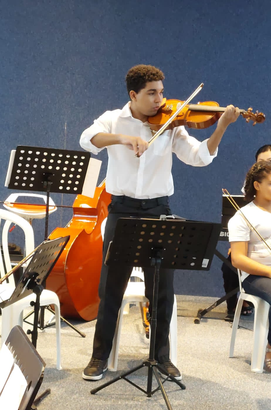 “Mais uma noite belíssima, imperdível e impecável! Parabéns aos alunos, professores, maestro, voluntárias e demais integrantes dessa equipe especial e abençoada”, contou Eliane, mãe da Mirela e do Maurício, participantes do projeto Adolescer+ na região.