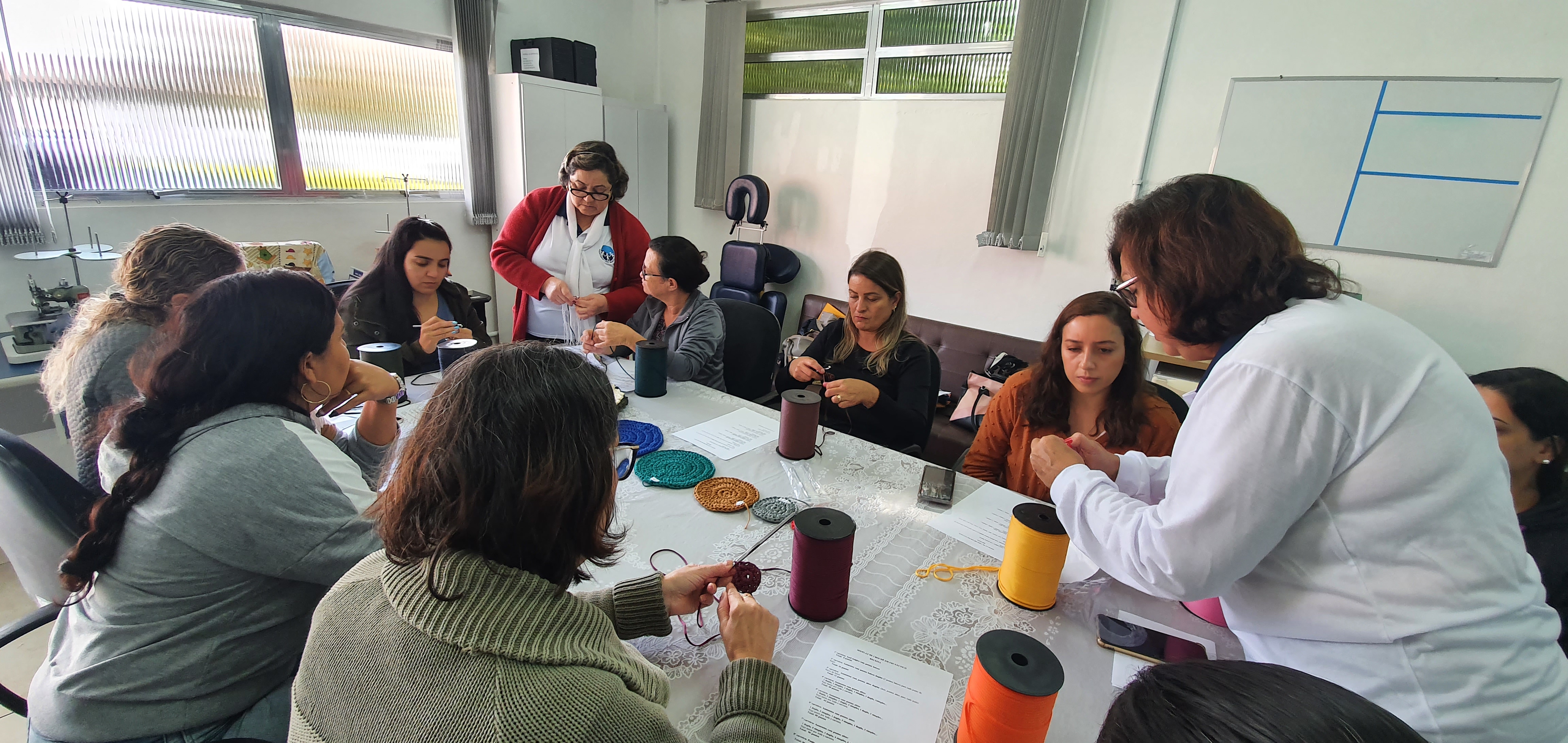 Com o intuito de apoiar o empreendedorismo e a obtenção de renda extra, as aulas foram dedicadas para o conhecimento de técnicas de crochê com fio náutico para criação do sousplat e demais artigos de decoração.