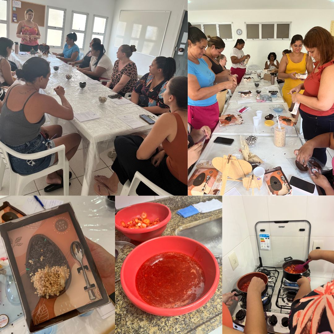 Nossas usuárias puderam aprender as técnicas necessárias para fazer um delicioso Ovo de Páscoa recheado. O diferencial foi o recheio de geleia de morango, que fez sucesso entre as participantes! Contamos com a colaboração de uma voluntária, que foi a responsável por repassar todo conhecimento às nossas usuárias.
