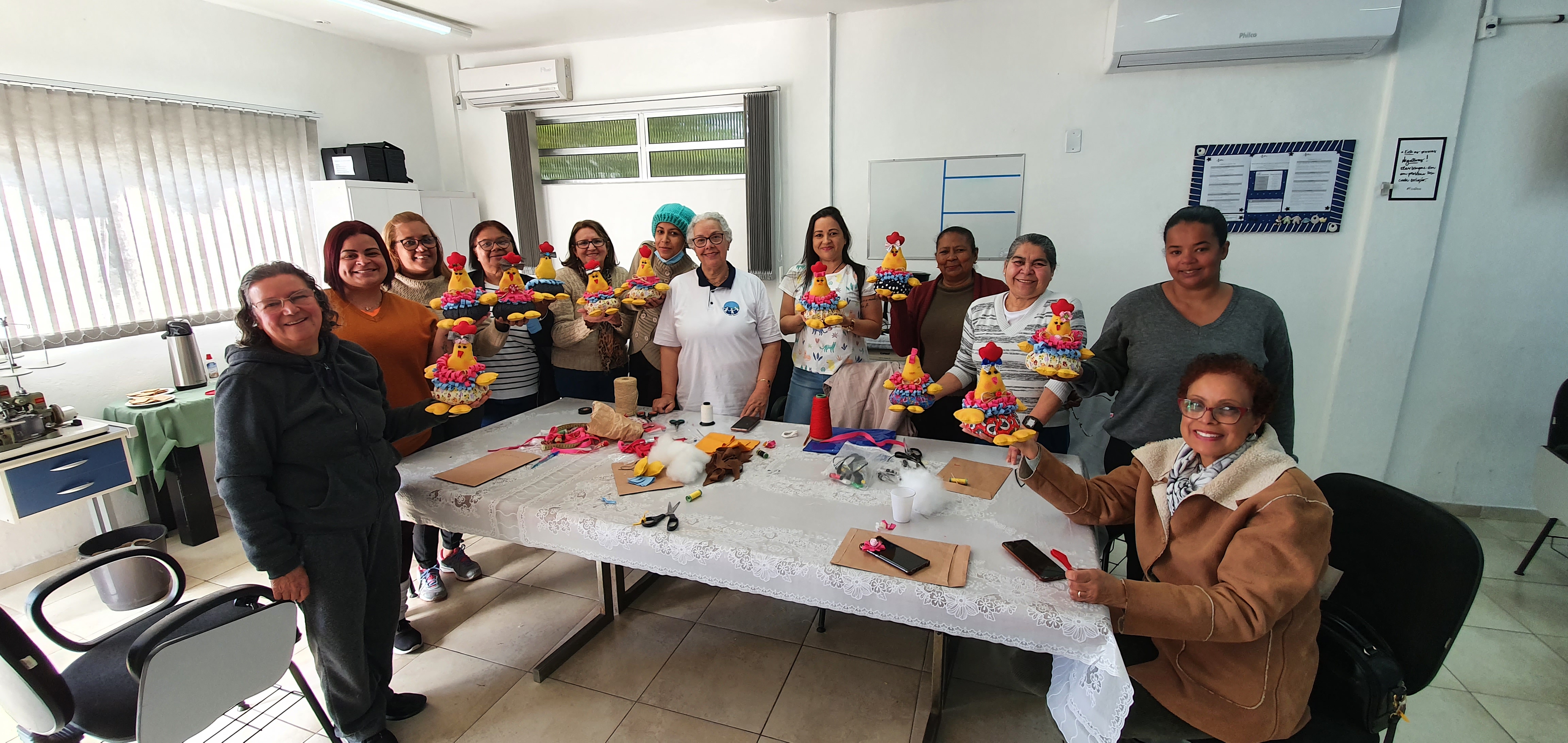 A atividade do Capacitar, que foi ministrada pela voluntária VCB Raquel, se dedicou ao ensino de técnicas em feltro e confecção dos pesos de porta com o modelo de galinhas em feltro. Ao todo 20 alunas participaram das turmas que, além do certificado, ofereceu as orientações para o empreendedorismo na área.