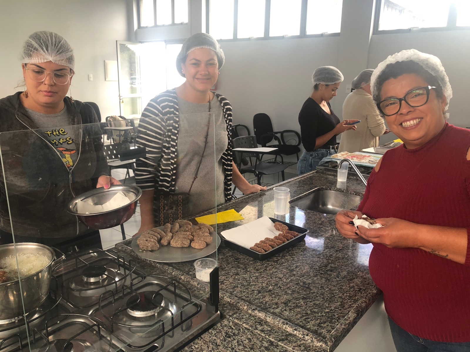 Nos dias 30 e 31 de maio, o Abrigo do Marinheiro em Rio Grande promoveu a Oficina de Salgados para dependentes da Família Naval na região. No primeiro dia, as participantes aprenderam a fazer quibes, com apoio da voluntária VCB Valdirene. Já no segundo dia, as participantes aprenderam a fazer coxinhas e bolinhas de queijo, com apoio da voluntária VCB Chaiana.