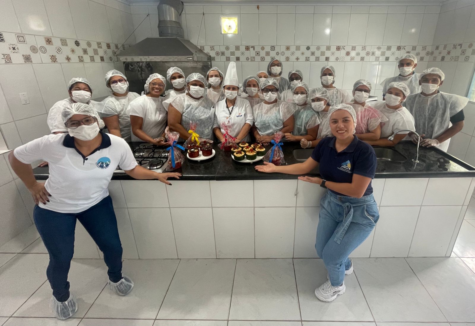 A oficina contou com a participação de quinze alunas, dependentes de militares da Marinha do Brasil, que aprenderam como preparar a massa, rechear, decorar e embalar os panetones.