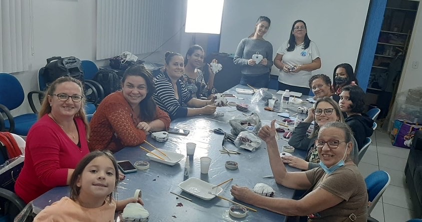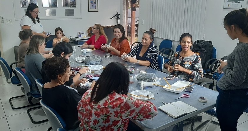 A voluntária VCB Gisele conduziu a atividade com dinâmica e competência, ensinando as técnicas de artesanato utilizando apenas papelão, cola e tecido na confecção das peças, além das dicas para o empreendedorismo na área por meio de um artesanato de baixo custo e com um lucro surpreendente.
