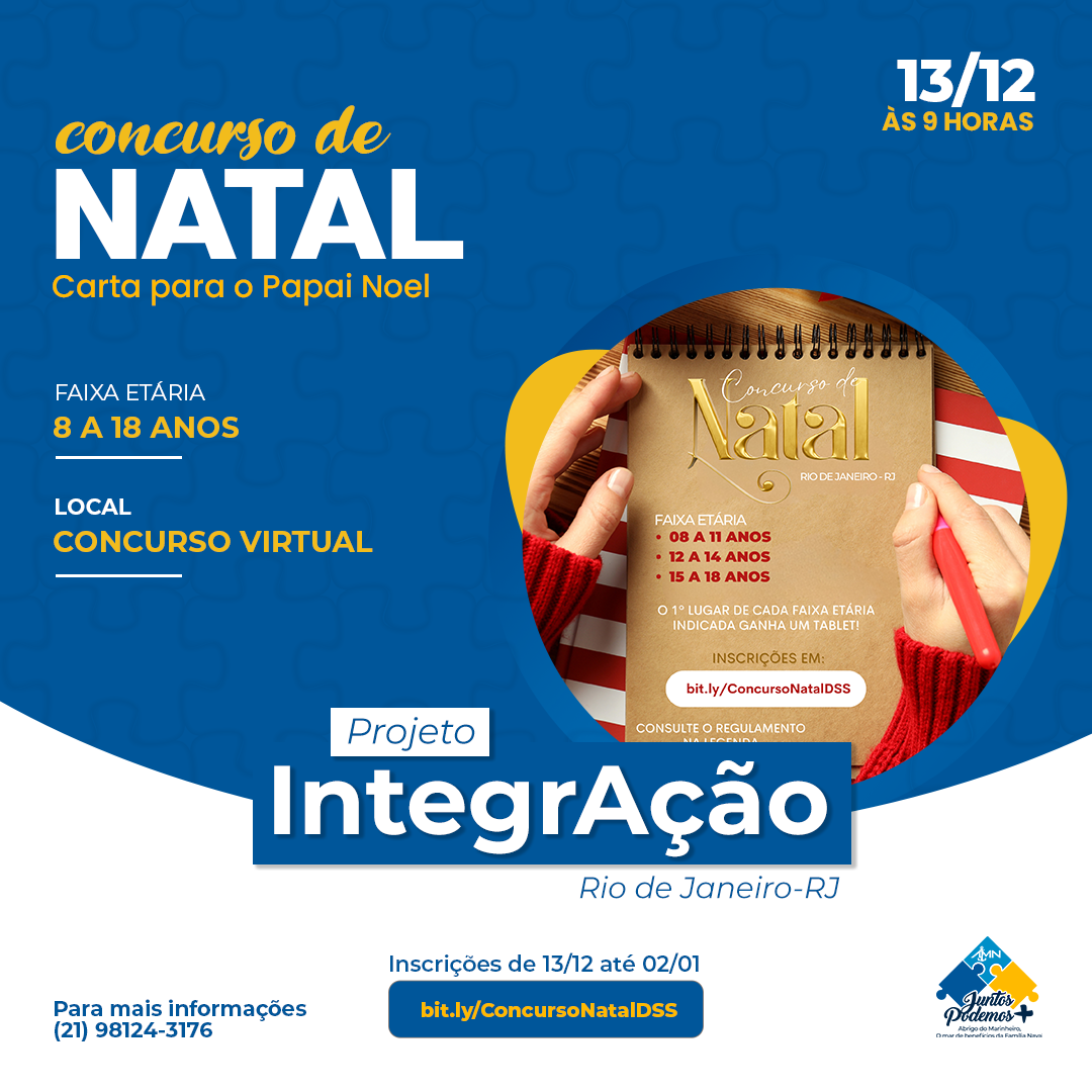 1 - Para participar, é necessário preencher este formulário com os dados do dependente participante e realizar a tarefa indicada conforme a faixa etária. (Link: bit.ly/ConcursoNatalDSS)