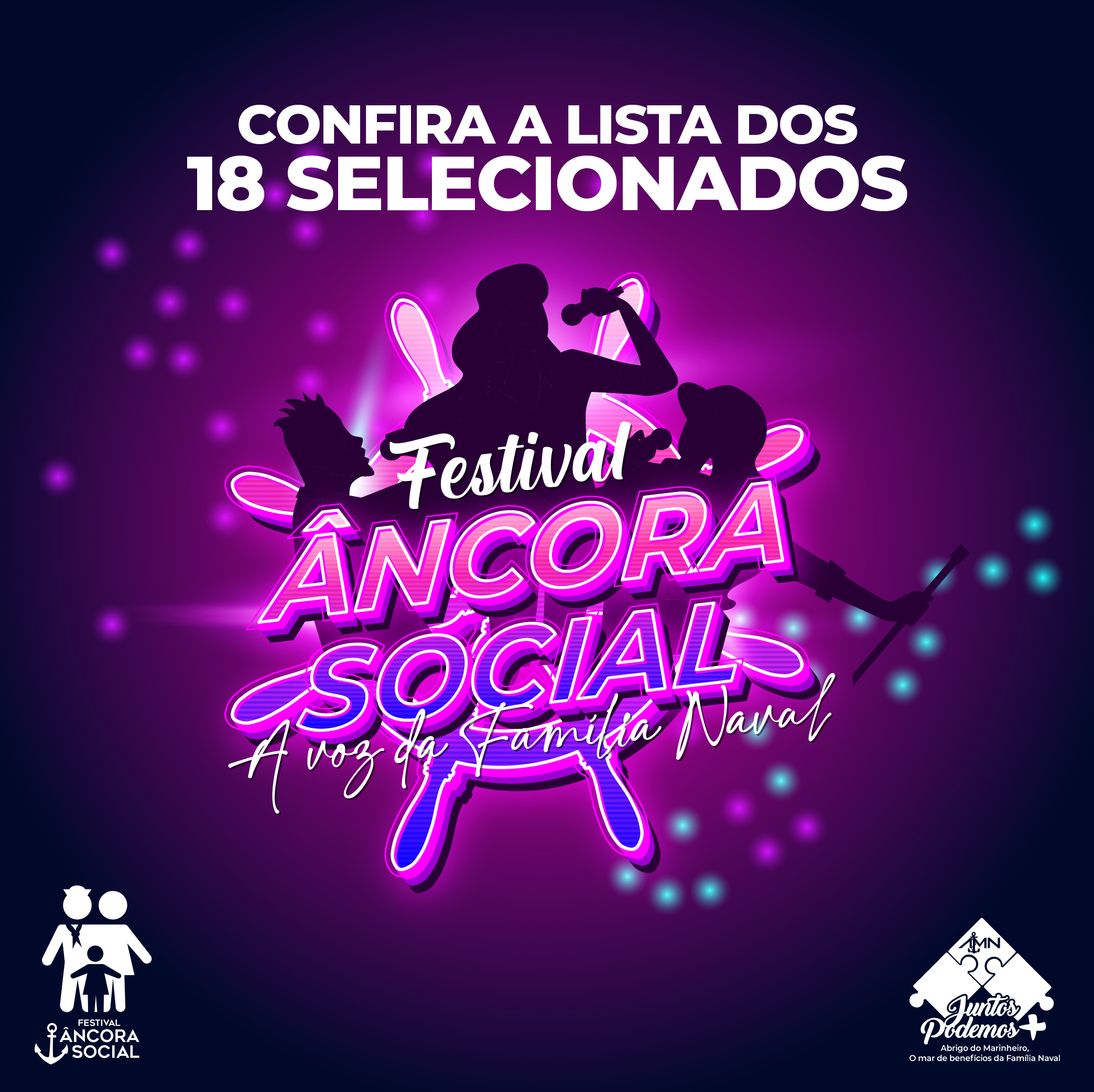Na live “Vença como uma mulher”, exibida no dia 16 de maio, através do canal de youtube do Abrigo do Marinheiro, foram reveladas as 18 vozes selecionadas para seguir na competição do 16° FESTIVAL ÂNCORA SOCIAL – A VOZ DA FAMÍLIA NAVAL.
