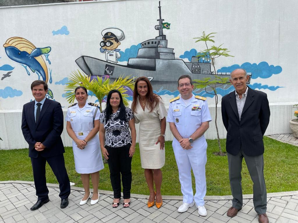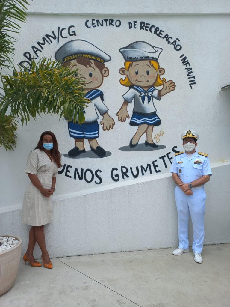 Na manhã do dia 11 de fevereiro, o Centro de Recreação Infantil Pequenos Grumetes (CRIPG), nova creche do Abrigo do Marinheiro (AMN) em Campo Grande-RJ, recebeu a ilustre visita da Diretora Nacional Voluntárias Cisne Branco (VCB), Sra. Selma Foligne.