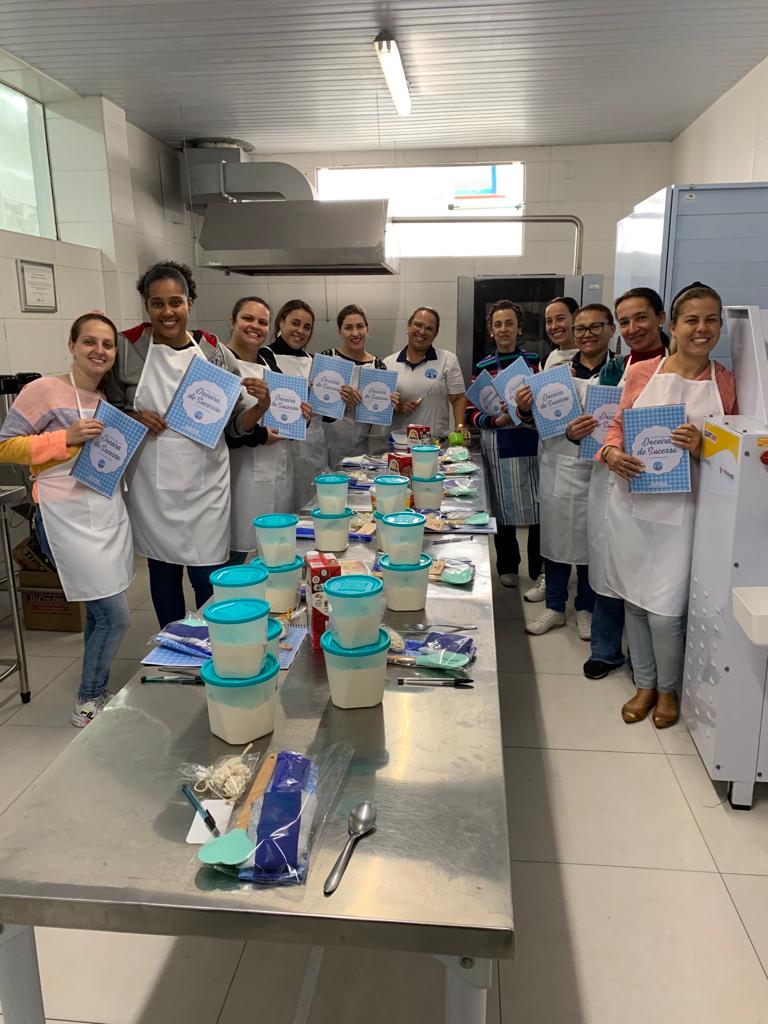 A atividade foi realizada na Cozinha-Escola da EAMSC, e contou com o apoio da Diretoria Seccional VCB Rio Grande que, por meio da mão de obra da voluntária Michelle Santiago, levou o ensino de técnicas para o preparo de qualquer sabor de bolo, além de oferecer uma apostila com demais conhecimentos e receitas.