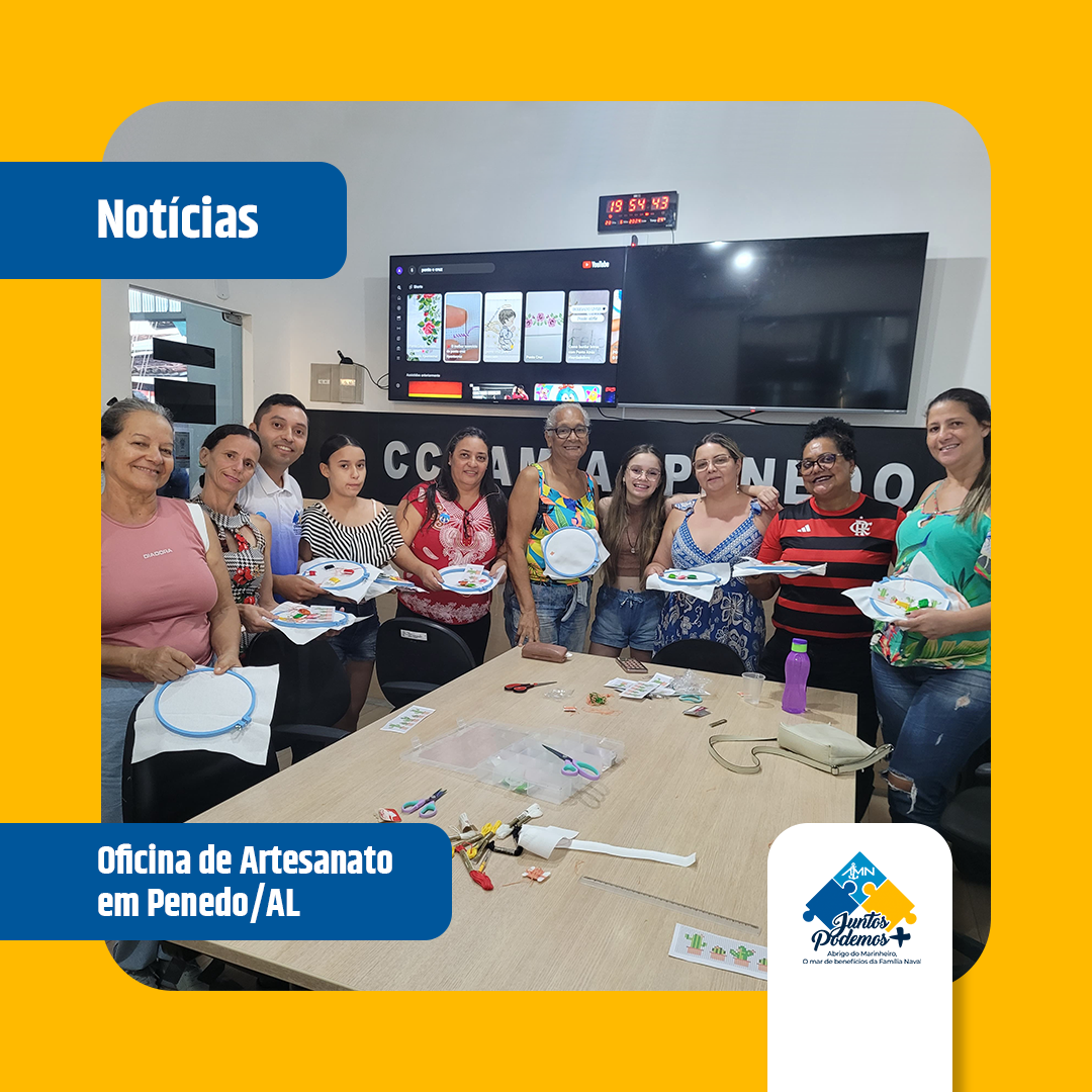 A Família Naval de Penedo-AL participou da Oficina de Artesanato, promovida pelo projeto IntegrAção. O evento de artesanato foi idealizado pela equipe do AMN em Natal, e contou com o apoio da voluntária VCB Jane Lúcia, artesã reconhecida na região por suas peças únicas.