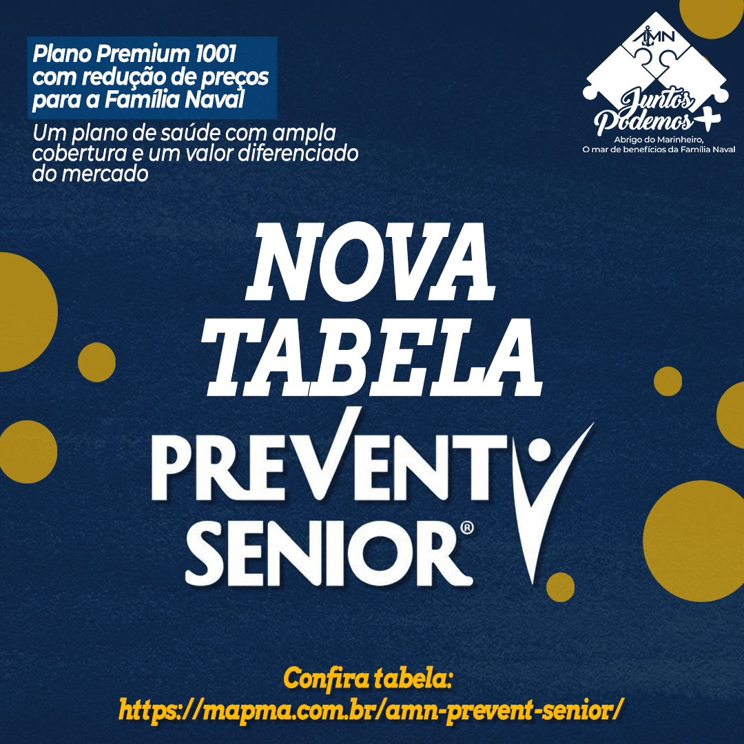 Confira a tabela atual no site: https://mapma.com.br/amn-prevent-senior/