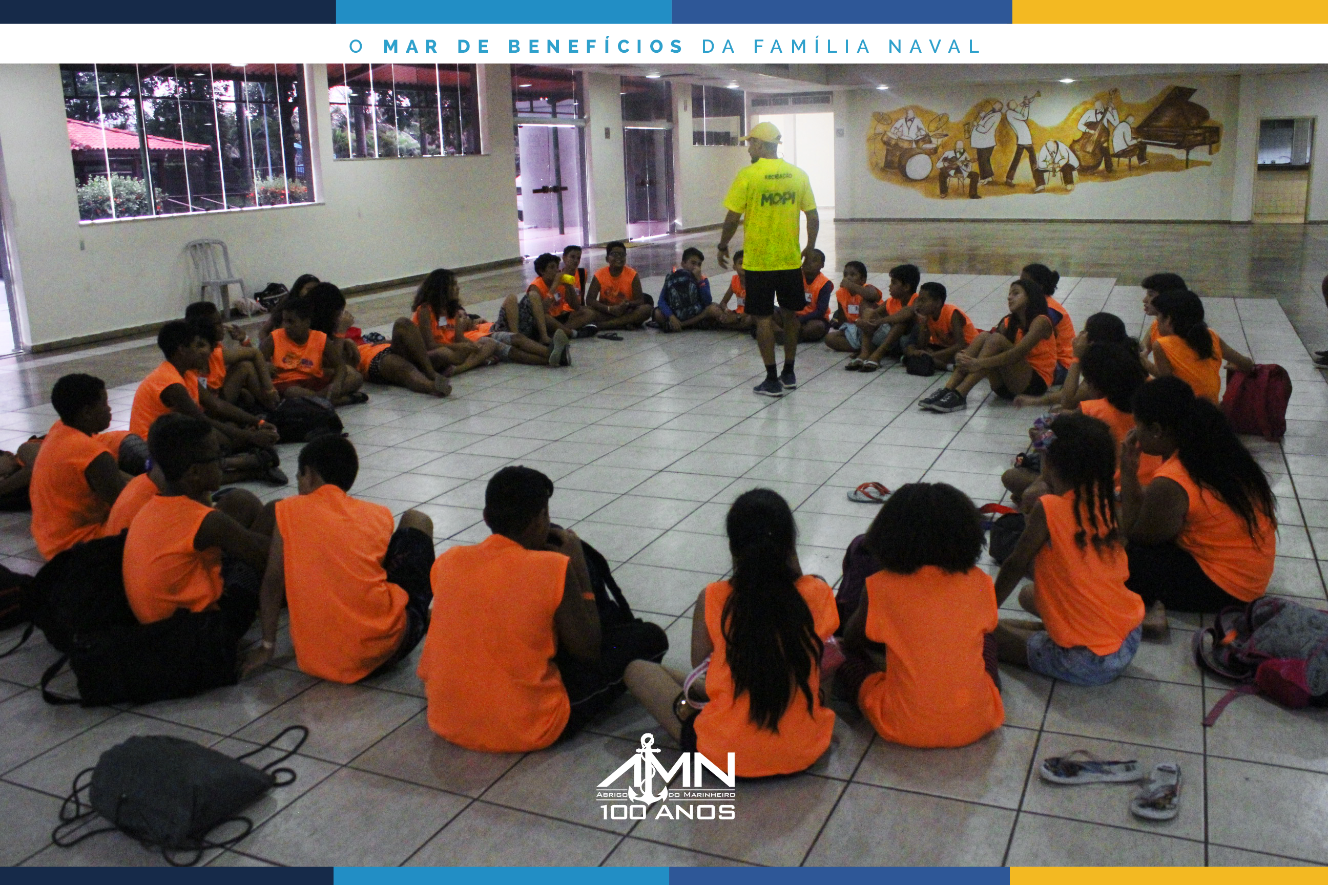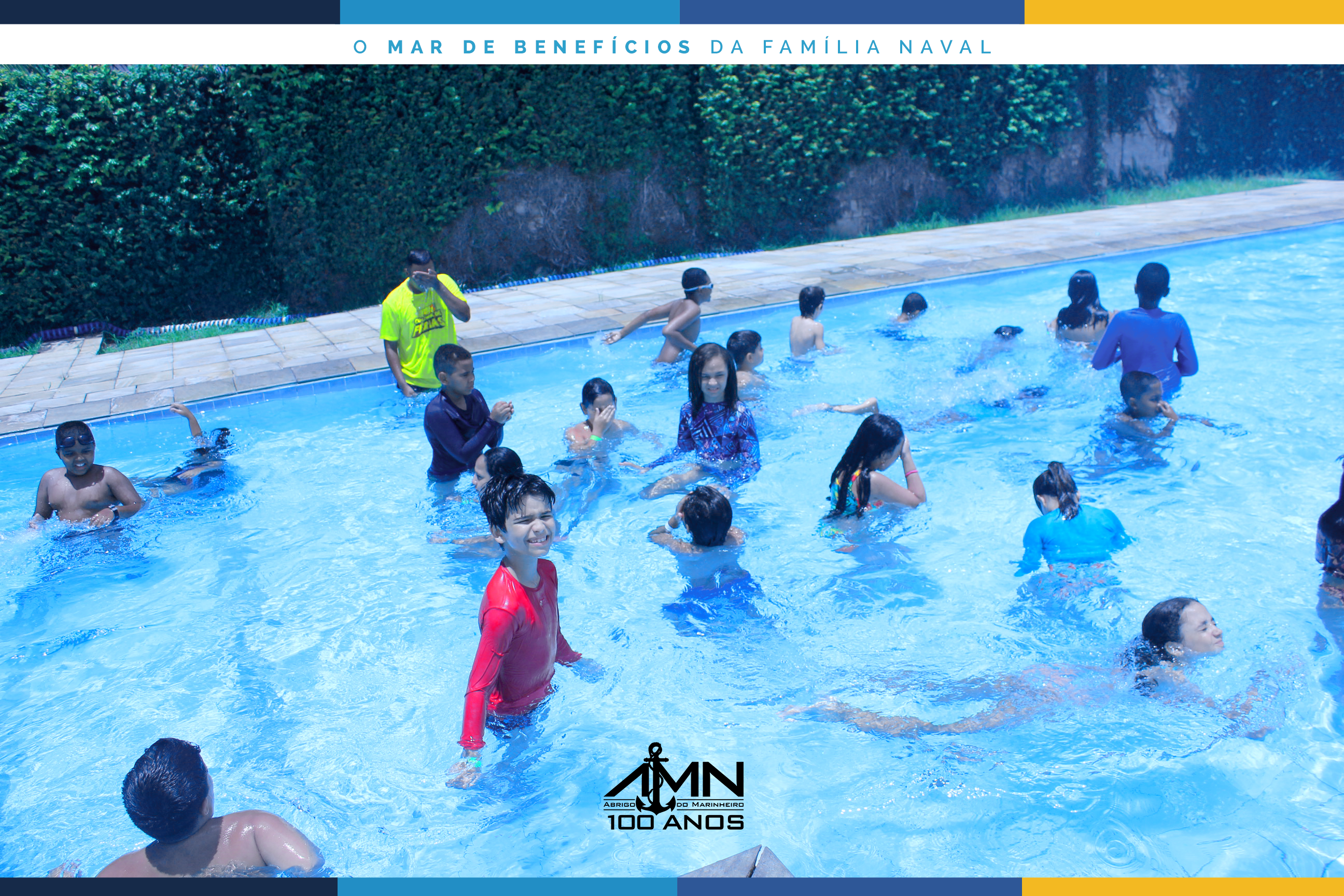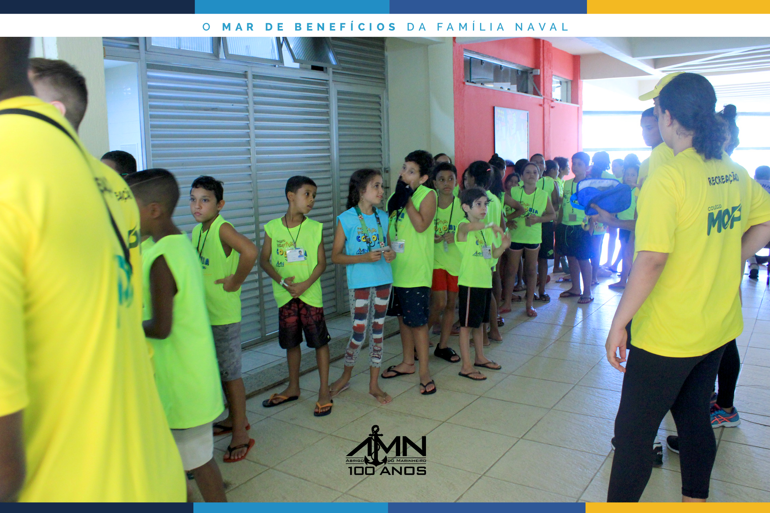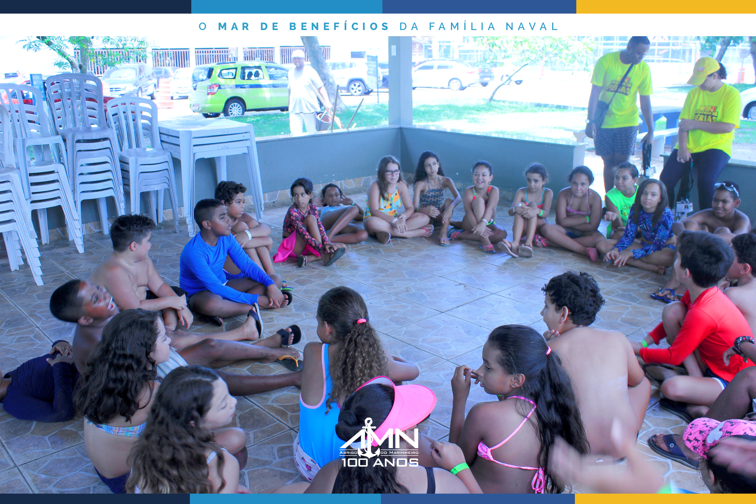 No dia 6 de janeiro, pela manhã, iniciou-se mais uma edição da Colônia de Férias AMN na Área Recreativa Esportiva e Social da Casa do Marinheiro, que este ano conta com a inscrição de 127 crianças e adolescentes entre 7 e 14 anos.