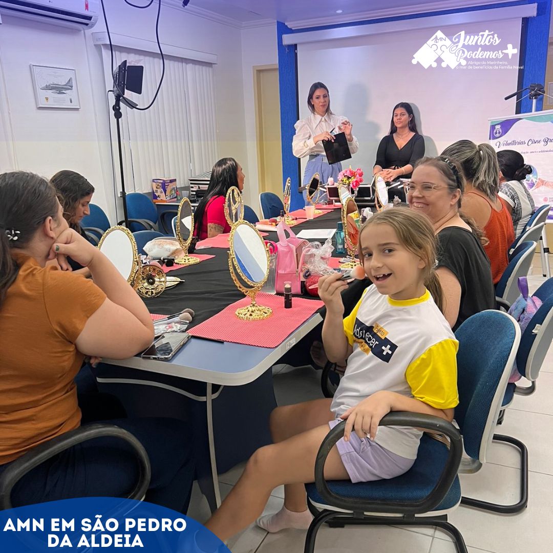 No dia 23 de maio, o Abrigo do Marinheiro em São Pedro da Aldeia promoveu uma atividade especial para as mulheres da Família Naval na região. Com o objetivo de proporcionar experiências de autocuidado e amor próprio, foi realizada a Oficina de Automaquiagem.