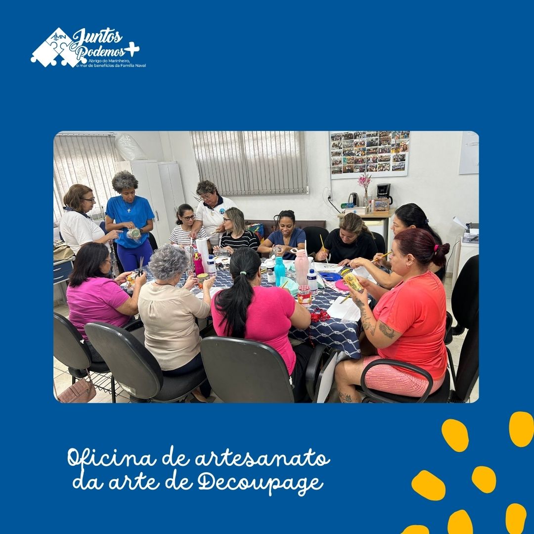 Nos dias 23 e 25 de abril, o Abrigo do Marinheiro em Rio Grande, em parceira com o Departamento VCB Seccional Rio Grande, realizou duas Oficinas de Artesanato da arte de Decoupage, que é a técnica de cobrir objetos e superfícies com reaproveitamento de materiais.