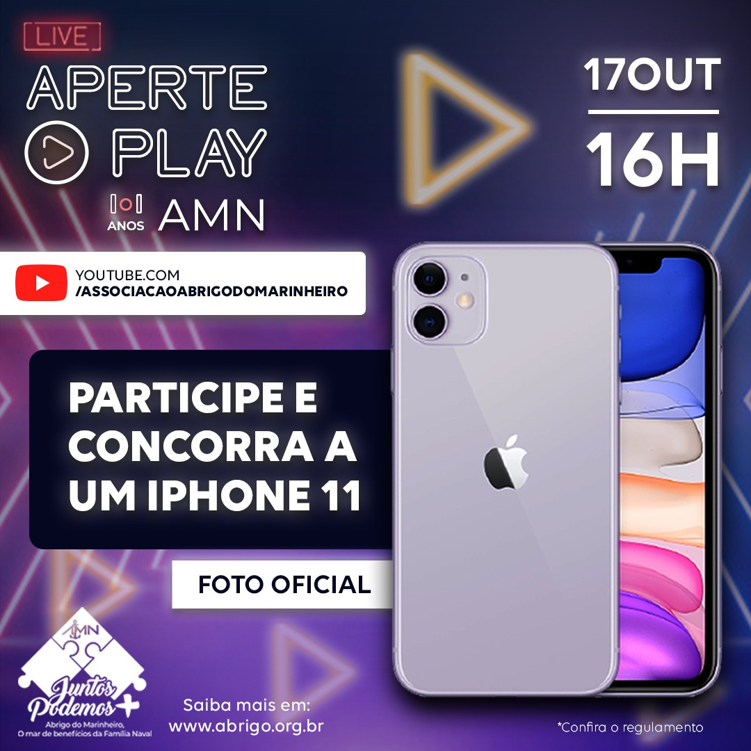 5. Estar conectado à live Aperte o Play, onde ocorrerá o sorteio do iPhone 11 e diversos outros prêmios anunciados durante a transmissão.