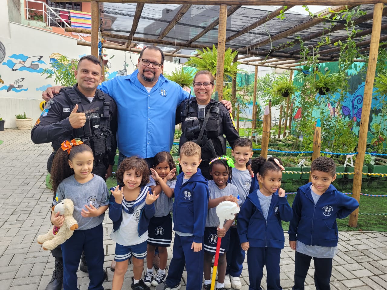 No dia 19 de maio, o Centro de Recreação Infantil Pequenos Grumetes em Campo Grande recebeu o CB Mageste e a CB Flávia, ambos do 40° Batalhão de Polícia Militar para o patrulhamento escolar comunitário.