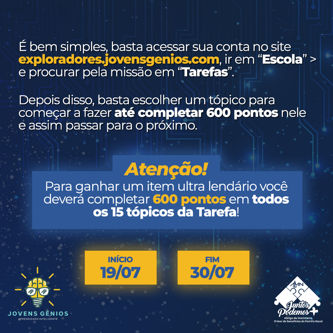 Para ingressar na Missão Férias, acesse sua conta em exploradores.jovensgenios.com