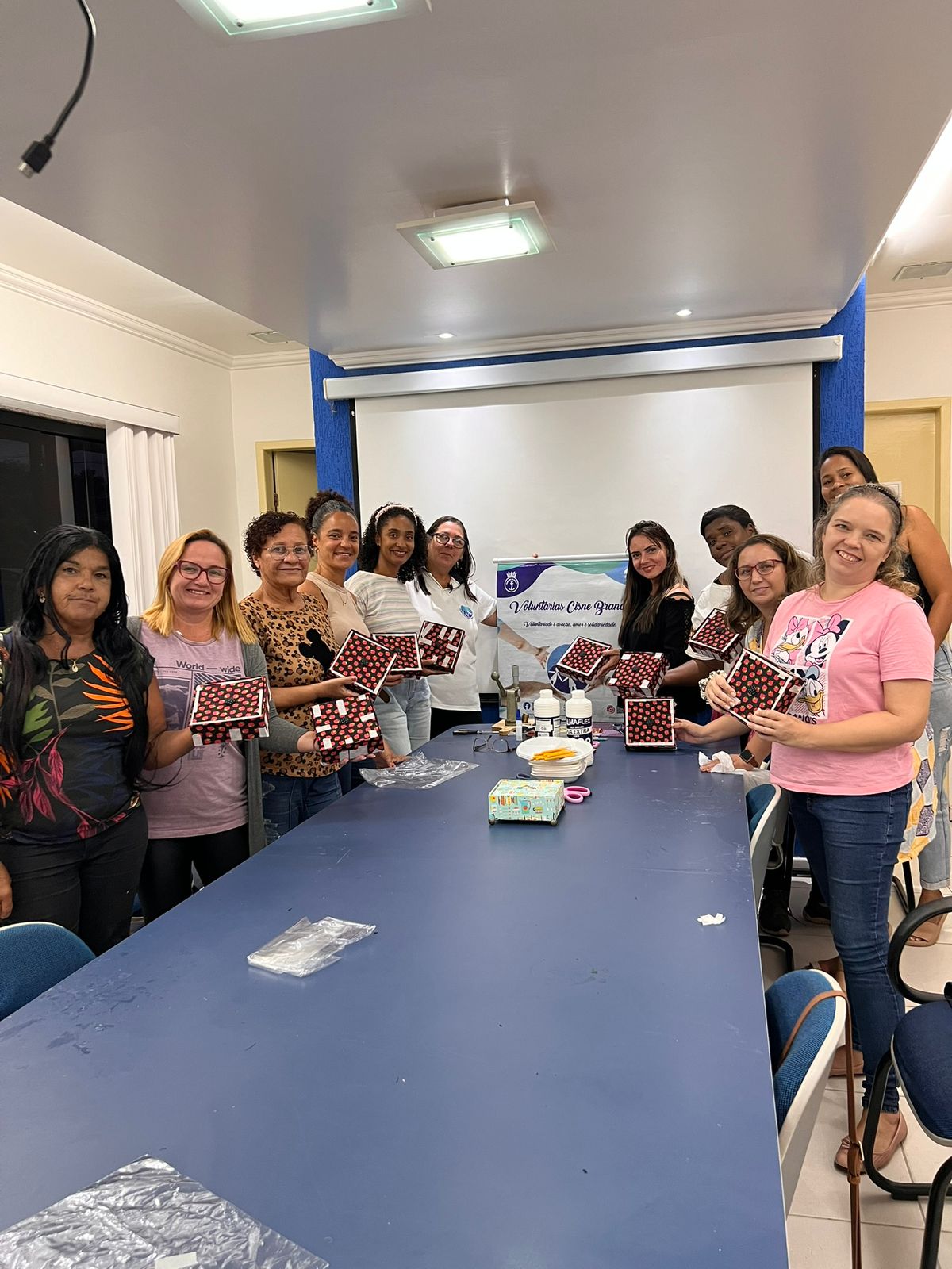Sob a orientação da voluntária Gizelle (precisamos do sobrenome), as participantes do projeto Capacitar mergulharam na arte de criar porta chás, enquanto compartilhavam experiências e fortaleciam laços comunitários.