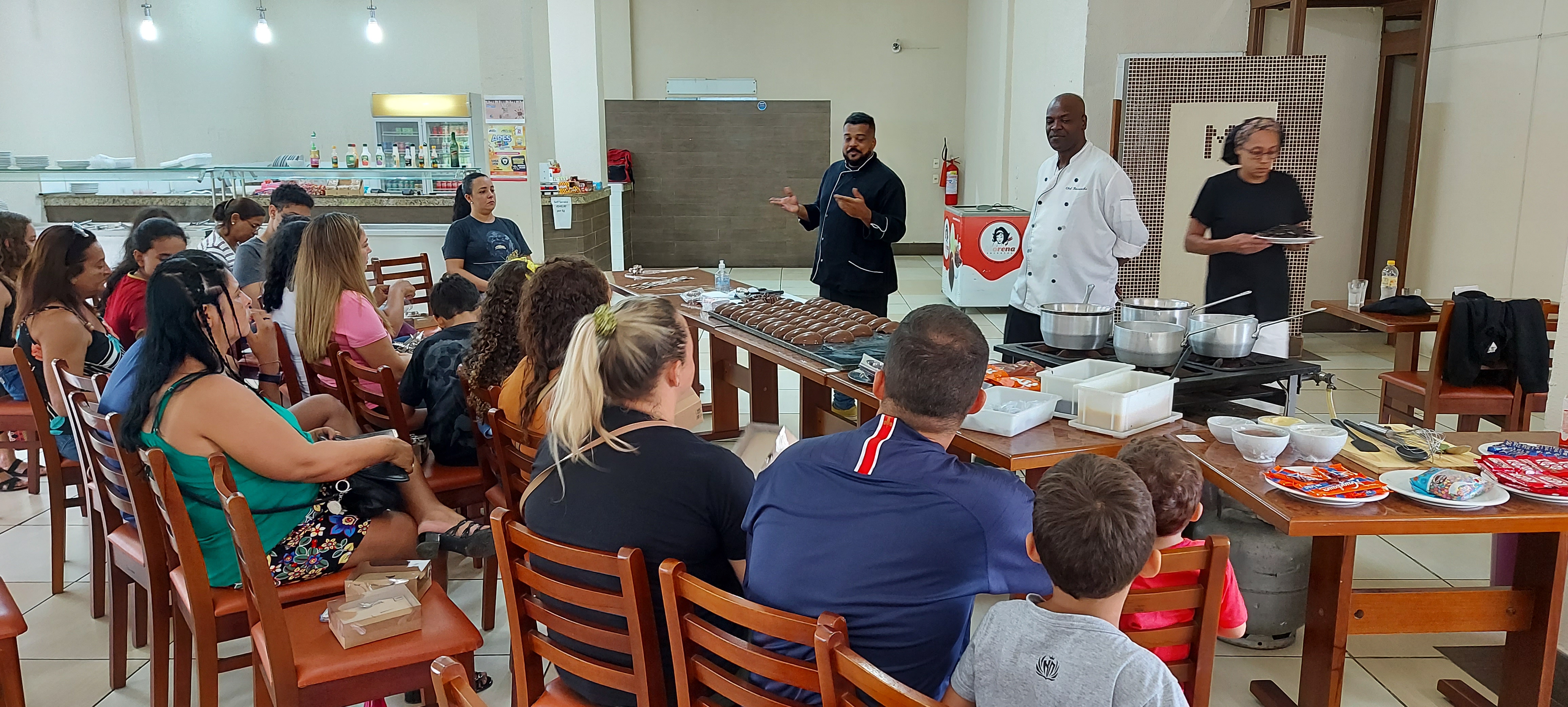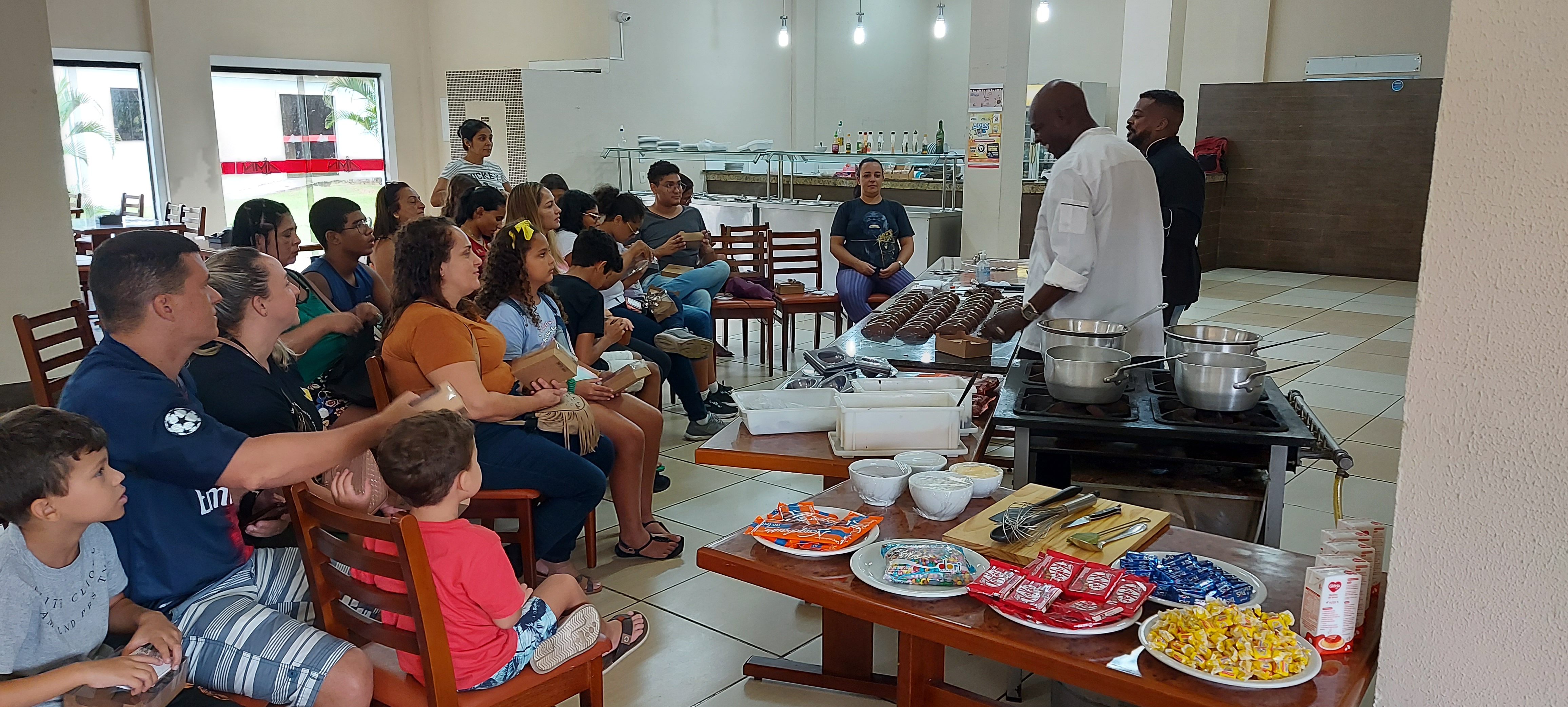 A oficina teve como propósito promover a interação entre pais e filhos, com um encontro de gerações de forma divertida e criativa. A oficina foi guiada pelos Cheffs Marcelo de Carvalho e Rosanches, que ensinaram sobre temperagem de chocolate e como preparar um delicioso ovo de páscoa recheado.