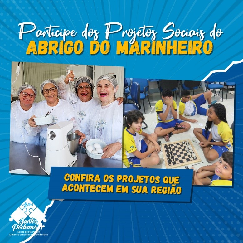 O Abrigo do Marinheiro dispõe de Projetos Sociais voltados exclusivamente para a Família Naval. Conheça algumas oportunidades: