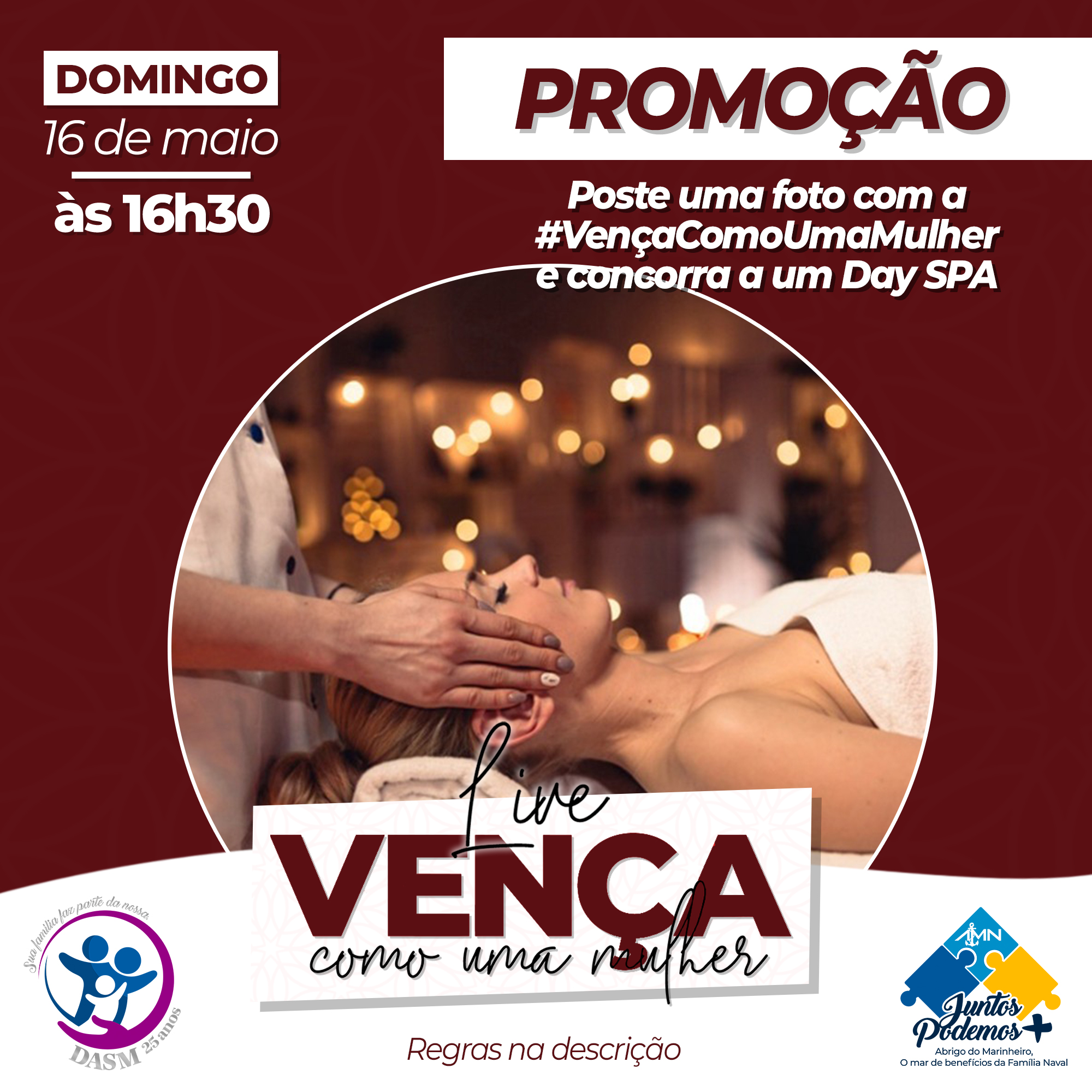 Que tal curtir um renovador e delicioso DaySpa? Exatamente!!! Na live “Vença como uma Mulher” iremos premiar um de nossos seguidores com essa experiência incrível de cuidado com a saúde física e mental.