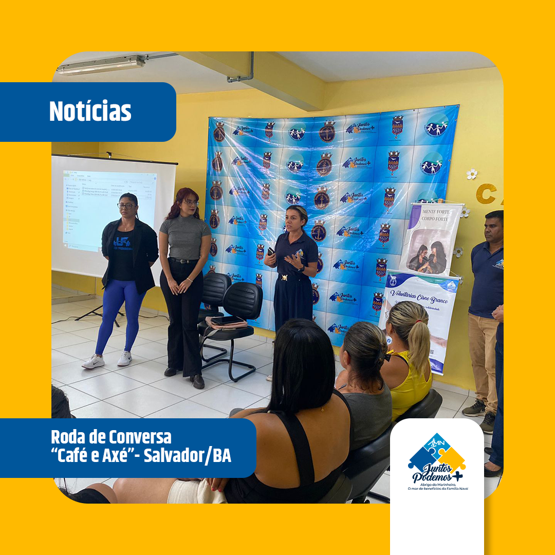 No dia 27 de junho, o Abrigo do Marinheiro em Salvador, em parceria com o Departamento VCB Seccional Salvador, promoveu a Roda de Conversa “Café e Axé” pelo Projeto IntegrAção. O tema do evento foi “Mente forte, corpo forte”, atividade que foi coordenada pela Educadora Física Ludymila Ferreira junto com a Psicóloga Ana Letícia. Durante a conversa, destacou-se a importância da inteligência emocional como aliada para enfrentar desafios pessoais, buscando o equilíbrio entre mente e corpo, e promovendo uma vida mais plena e satisfatória para os membros da Família Naval.
