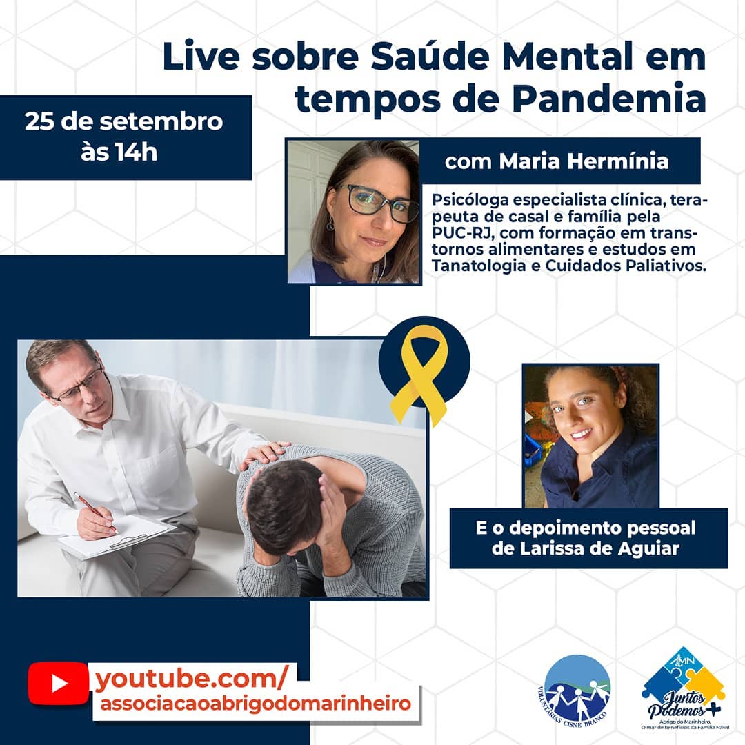 Seguindo com as atividades da campanha “Setembro Amarelo”, o Abrigo do Marinheiro em Brasília irá promover a live “Saúde Mental em tempos de Pandemia”, onde serão abordadas as situações enfrentadas pela sociedade com o isolamento social.