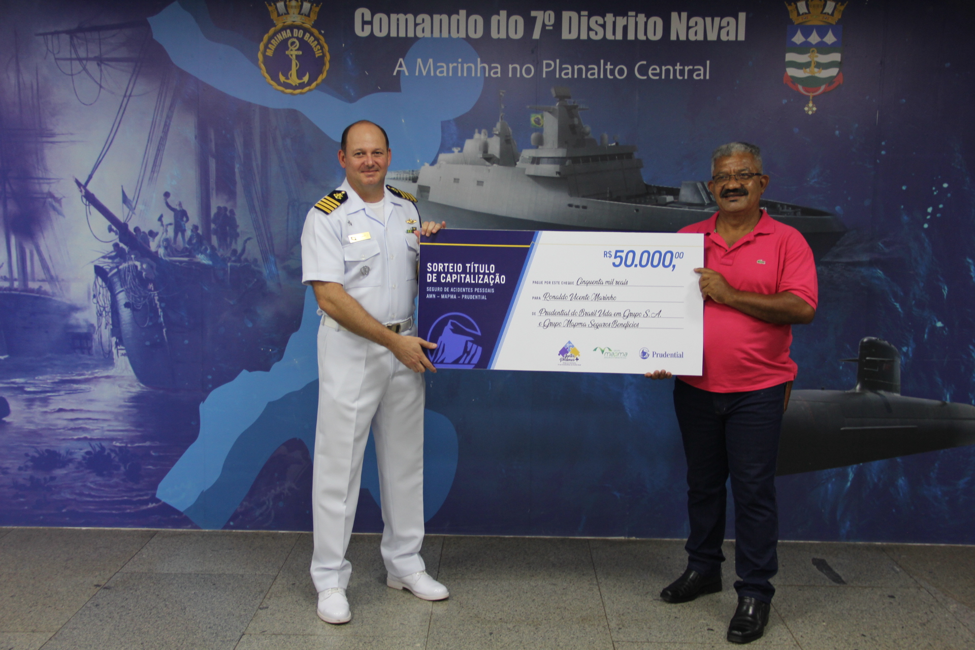 Quem disse que sexta-feira 13 é um dia de azar? Para o suboficial da reserva da Marinha Ronaldo Marinho Vicente a data representou justamente o contrário. Neste mês de novembro, das mãos do Diretor do Departamento Regional do AMN em Brasília, Capitão de Mar e Guerra (FN) Alexis, o sortudo recebeu 50 mil reais em sorteio de título de capitalização vinculado ao Seguro de Acidentes Pessoais Coletivo do contrato firmado entre o Abrigo do Marinheiro (AMN), a seguradora Prudential do Brasil Vida em Grupo e a Mapma Corretora de Seguros.