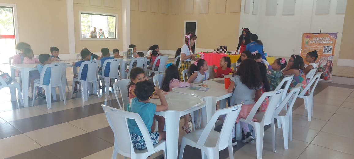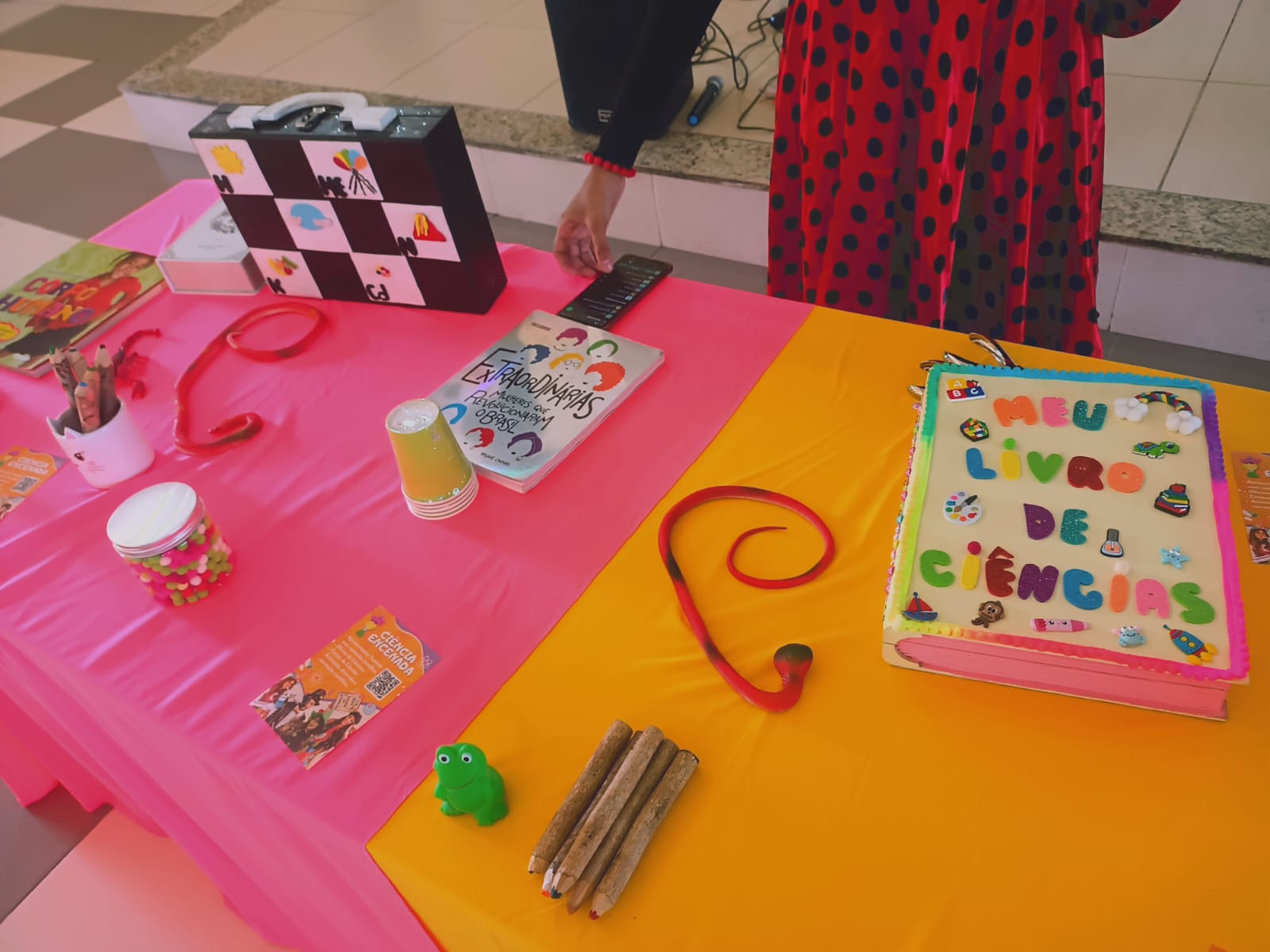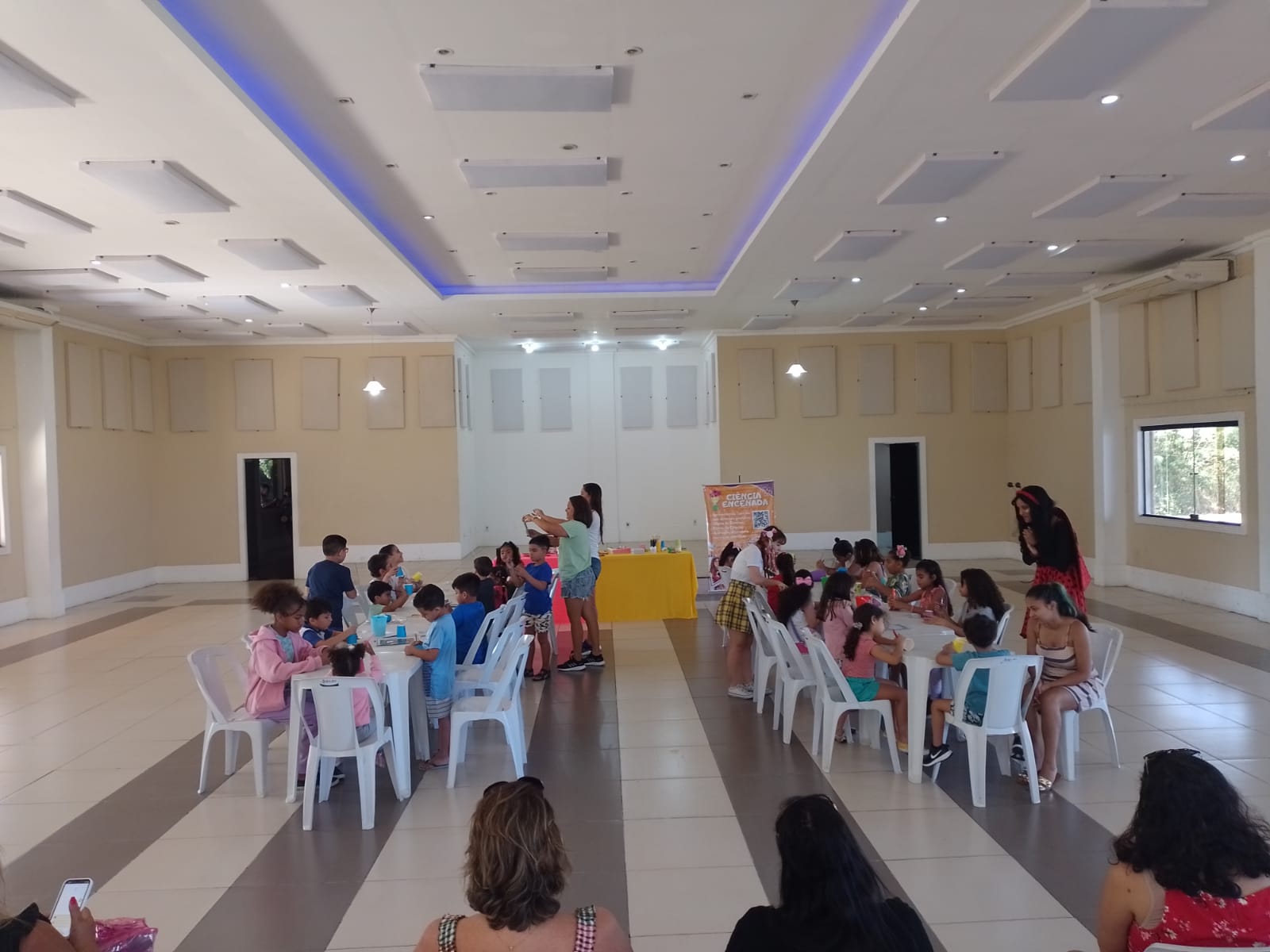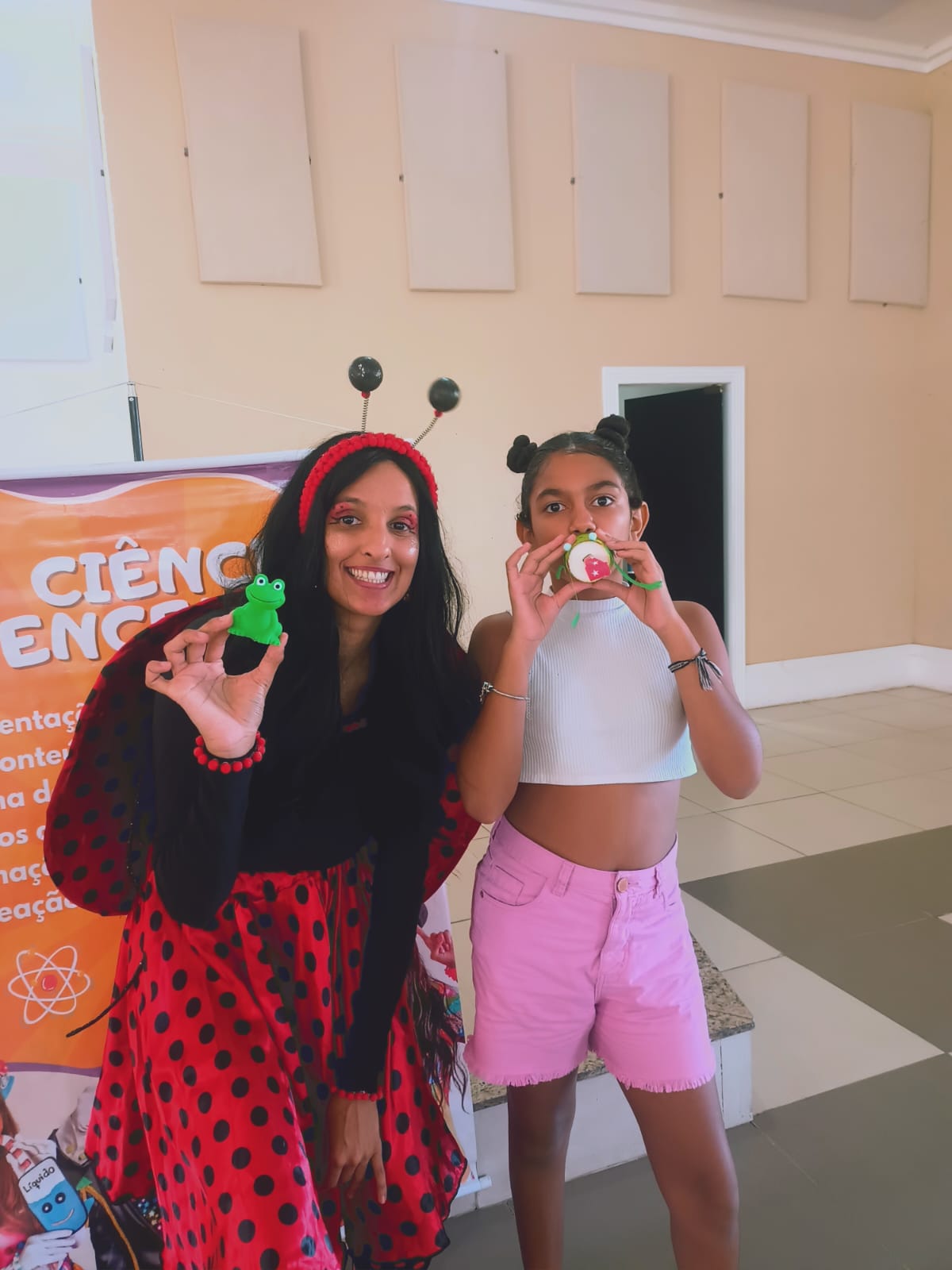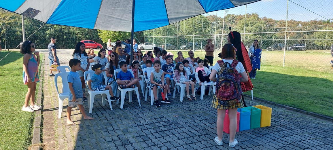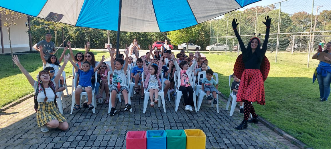 A atividade foi guiada pelo Companhia de Teatro ‘Ciência Encenada’, junto com a joaninha Bia e sua amiga Isa, que realizaram uma oficina temática com materiais recicláveis, mostrando a importância da fauna e a flora. Usando papel, plástico e outros, os personagens ensinaram as crianças a criarem alguns animais com materiais que podem ser encontrados facilmente em casa e melhor, com materiais que iriam para o lixo.