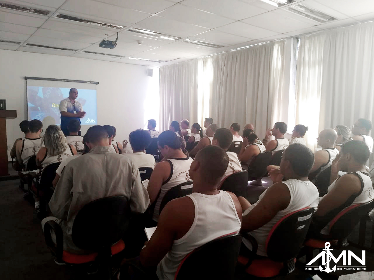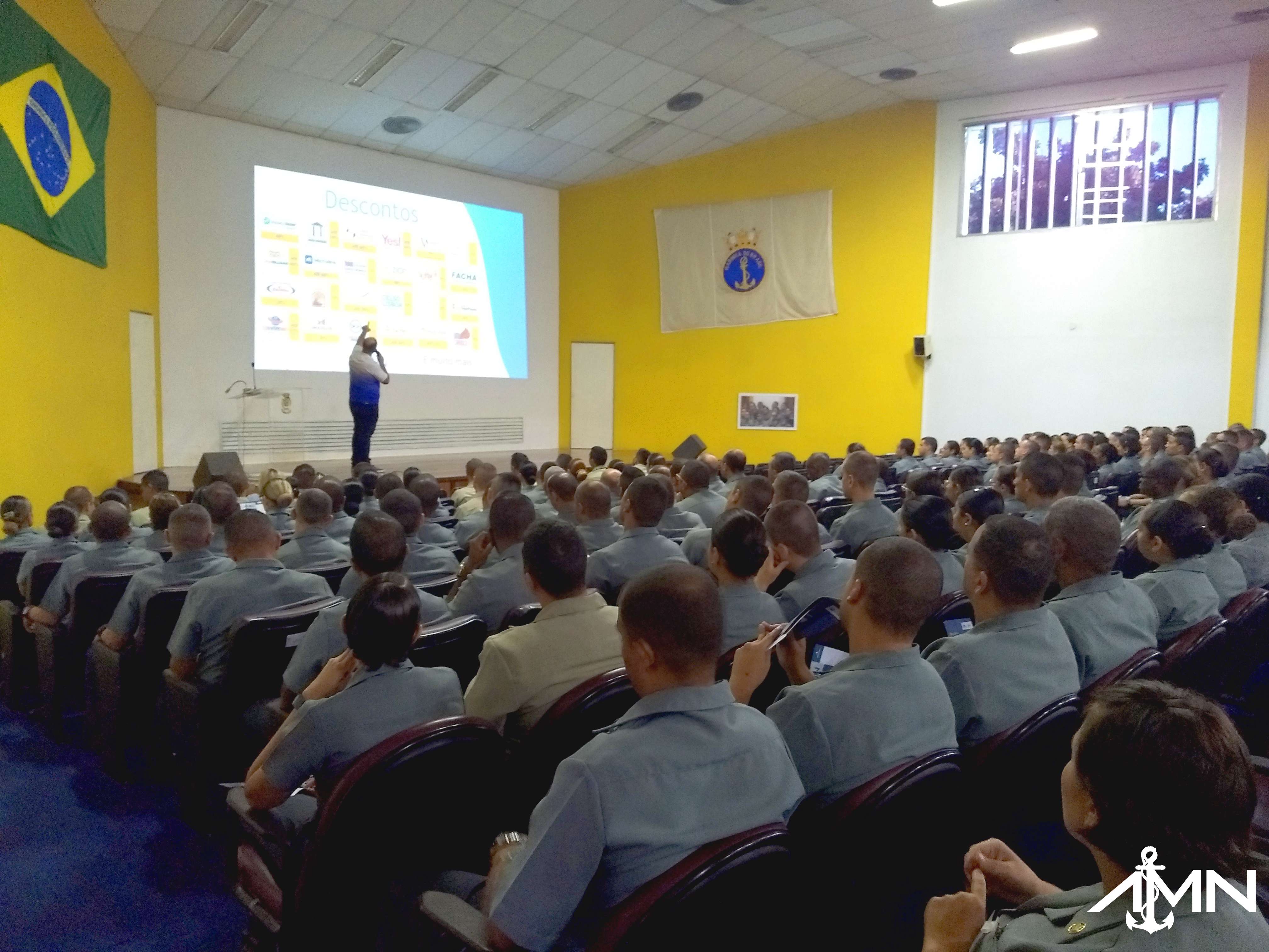 No último dia 23 de maio, o Abrigo do Marinheiro realizou palestra no auditório do Centro de Instrução Almirante Wandenkolk (CIAW) para divulgar os serviços, projetos sociais e descontos exclusivos à Família Naval. As administradoras de benefícios MAPMA e Qualicorp estiveram presentes por meio de promotoras.