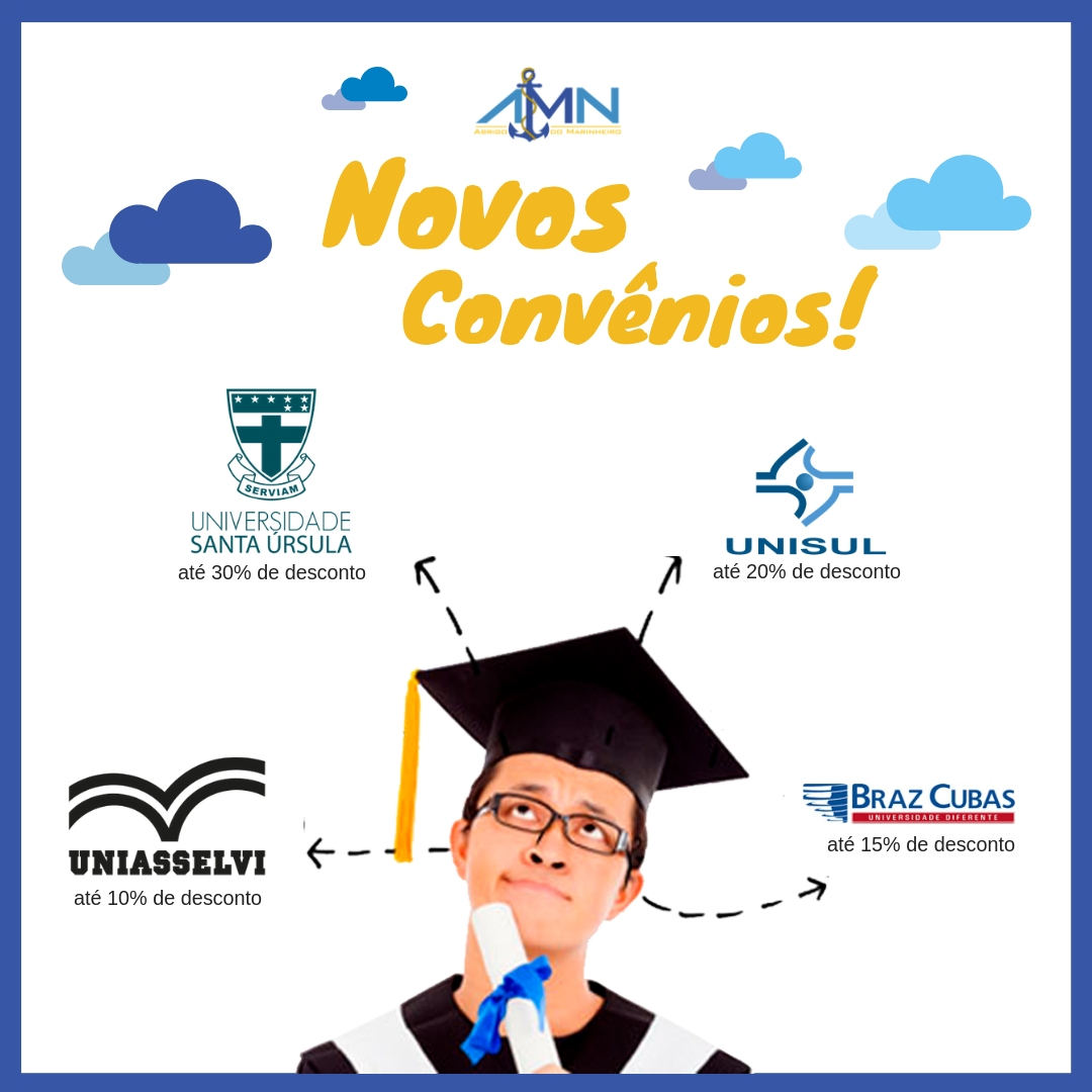 Num mercado cada vez mais competitivo, não há quem duvide da importância do diploma como pré-requisito para conquistar mais estabilidade na profissão, além de melhores faixas salariais. Pensando nisso, o Abrigo do Marinheiro fechou convênio com quatro universidades, são elas: Universidade Santa Úrsula, Universidade Brazcubas, Unisul e Uniasselvi.