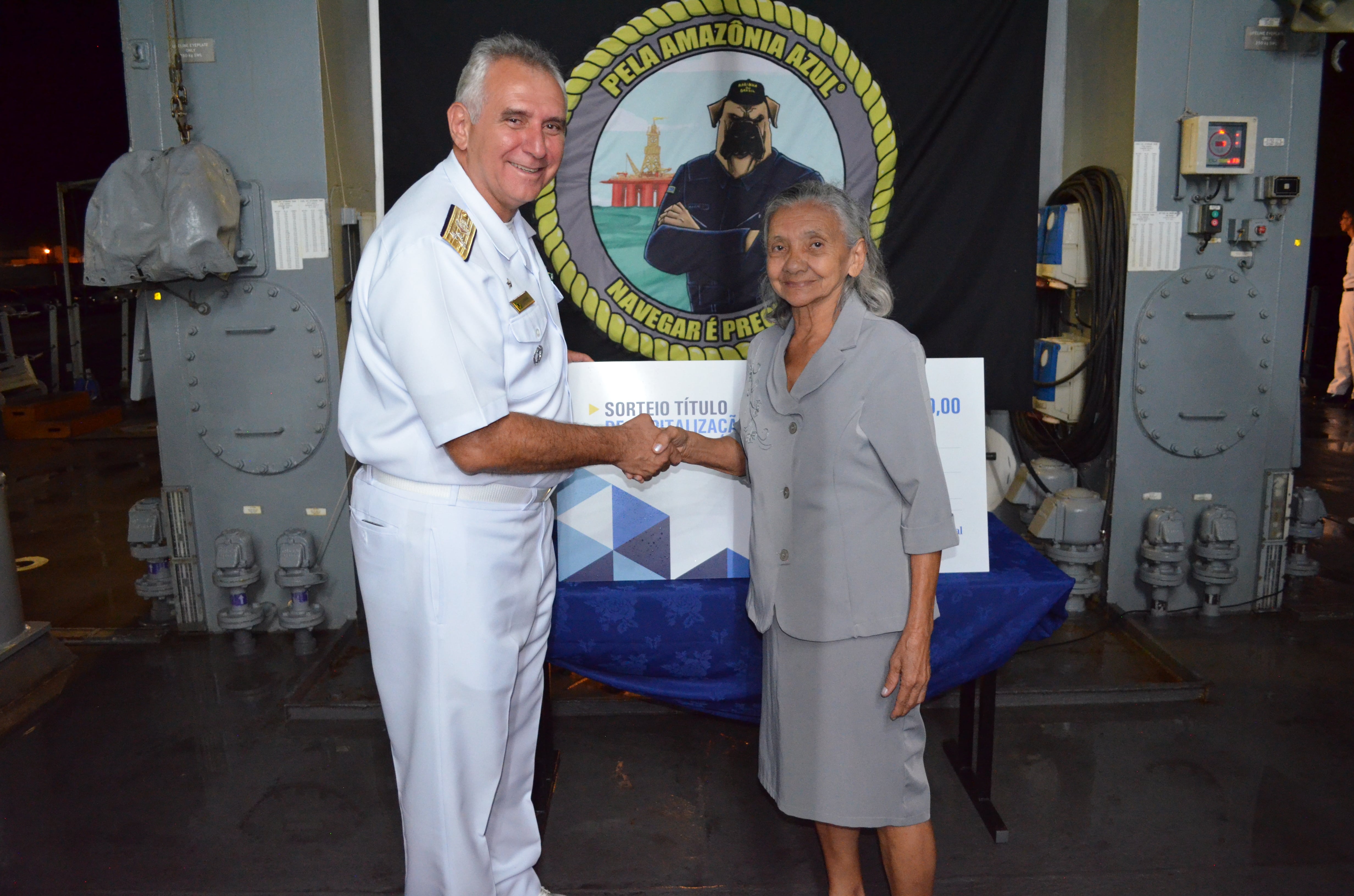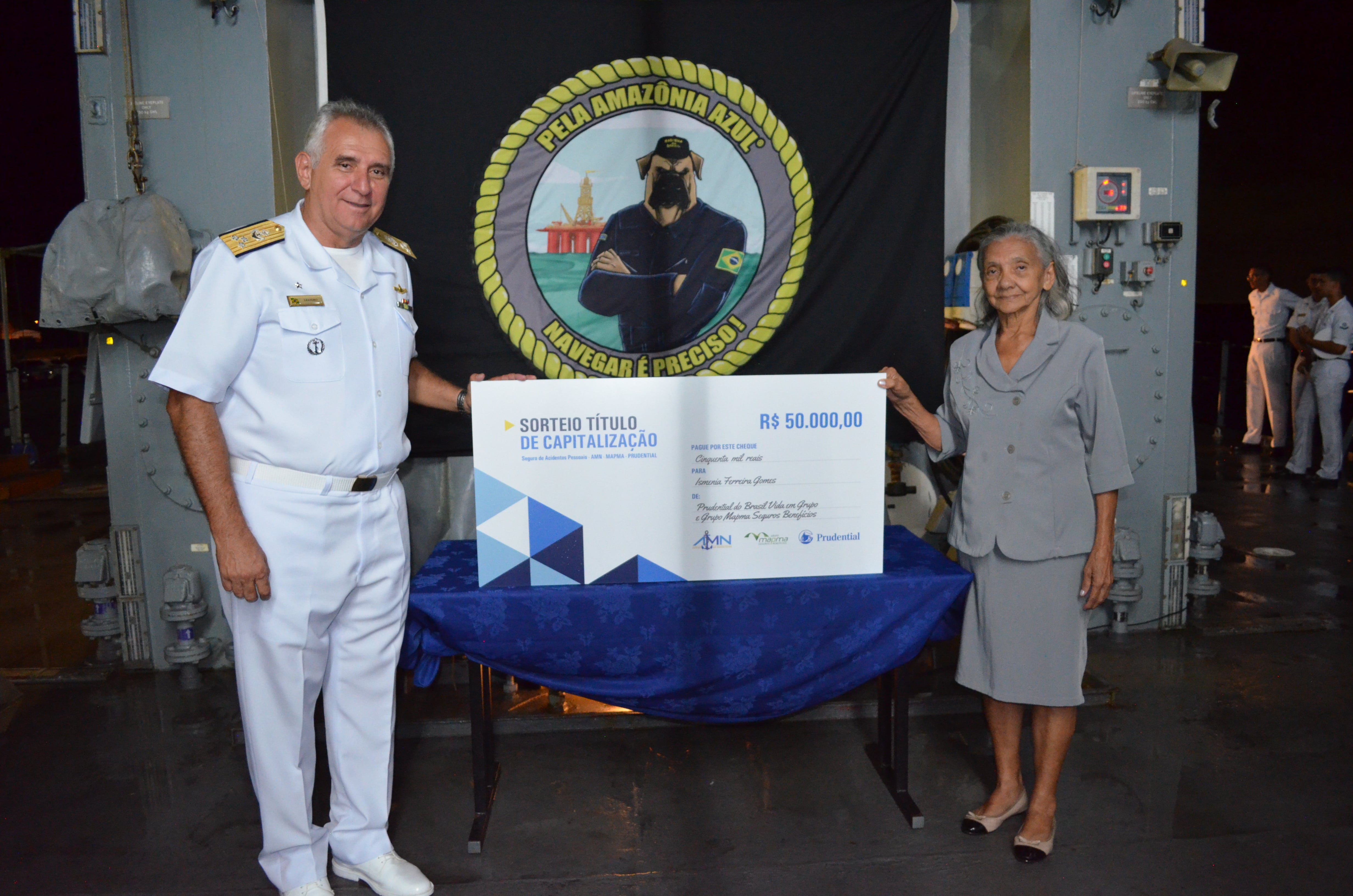 “Esse prêmio veio em uma hora muito boa”, comemorou dona Ismenia após receber o ‘checão’ das mãos do Vice-Almirante Leandro, Comandante do 3° Distrito Naval, durante a cerimônia realizada em 11/Dez/2018, a bordo do Navio Patrulha Oceânico ‘Araguari’. Com o dinheiro, Ismenia já mandou pintar a casa, pagou as contas e ainda guardou uma parte pensando no futuro.