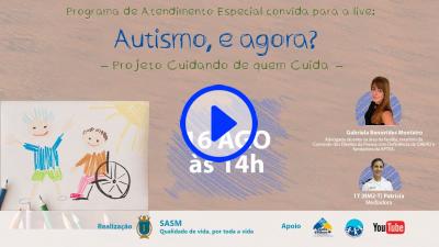 O SASM apresenta hoje uma Live do Projeto Cuidando de Quem Cuida, onde abordará tema de relevância para os usuários do Programa de Atendimento Especial - PAE: Autismo, e agora?