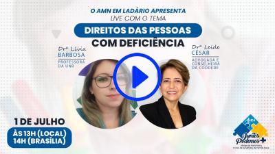 A iniciativa do AMN em Ladário, em parceria com o NAS 6º DN, promove uma palestra sobre o Direito das Pessoas com Deficiência. Para agregar credibilidade e enriquecer o conteúdo proposto, iremos contar com a Professora Dra. Lívia Barbosa, professora da UNB e a Dra. Leide César, Advogada e Conselheira do CODDEDE - Conselho de Defesa dos Direitos da Pessoa com Deficiência.
