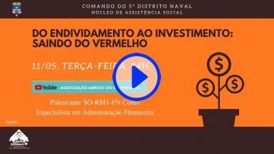O AMN convida toda a Família Naval para participar de uma palestra promovida pelo SASM, onde abordaremos sobre a saúde financeira em momentos de crise, como o período de pandemia que estamos vivendo. Para enriquecer o conteúdo, iremos contar com o apoio do Educador Financeiro Reinaldo Domingos, criador da Metodologia DSOP e apresentador do canal Dinheiro à Vista.