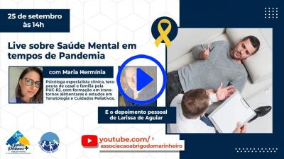 Seguindo com as atividades da campanha “Setembro Amarelo”, o Abrigo do Marinheiro em Brasília irá promover a live “Saúde Mental em tempos de Pandemia”, onde serão abordadas as situações enfrentadas pela sociedade com o isolamento social.