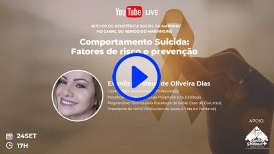 "Comportamento Suicida: Fatores de risco e prevenção" abordará estratégias de intervenção e prevenção ao suicídio. A live será ministrada pela psicóloga Evanilza Mateus de Oliveira Dias