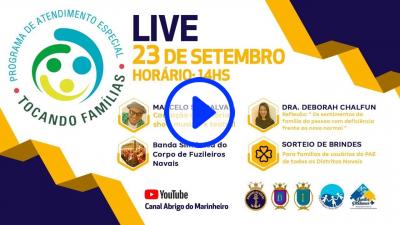 No próximo dia 23/09 (5a feira), às 14h, o Programa de Atendimento Especial – Pessoa com Deficiência (PAE) da Marinha do Brasil (MB), convida a Família Naval e todos os interessados para participarem do evento "Tocando Famílias 2021".