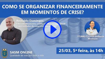 O AMN convida toda a Família Naval para participar de uma palestra promovida pelo SASM, onde abordaremos sobre a saúde financeira em momentos de crise, como o período de pandemia que estamos vivendo. Para enriquecer o conteúdo, iremos contar com o apoio do Educador Financeiro Reinaldo Domingos, criador da Metodologia DSOP e apresentador do canal Dinheiro à Vista.