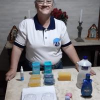 A doação dos sabonetes foi da artista plástica Eliane Caetano, que atua como voluntária desde 1980. Para ela, que tem formação em Belas Artes, com especialidade em Arte Sacra, confeccionar sabonetes é um dos muitos trabalhos que gosta de fazer. Ela atua com diferentes tipos de artesanato, pintura em tela e madeira, manipulação de joias de ouro, entre outros talentos que possui. Para ela, o mais importante é compartilhar tudo o que sabe. “Gosto de ensinar o que aprendo. Já o sabonete é simples de fazer. É algo rápido, basta ter as forminhas de silicone ou de chocolate. Adoro fazer. Sempre que faço algo assim mando para umas creches”, conta.